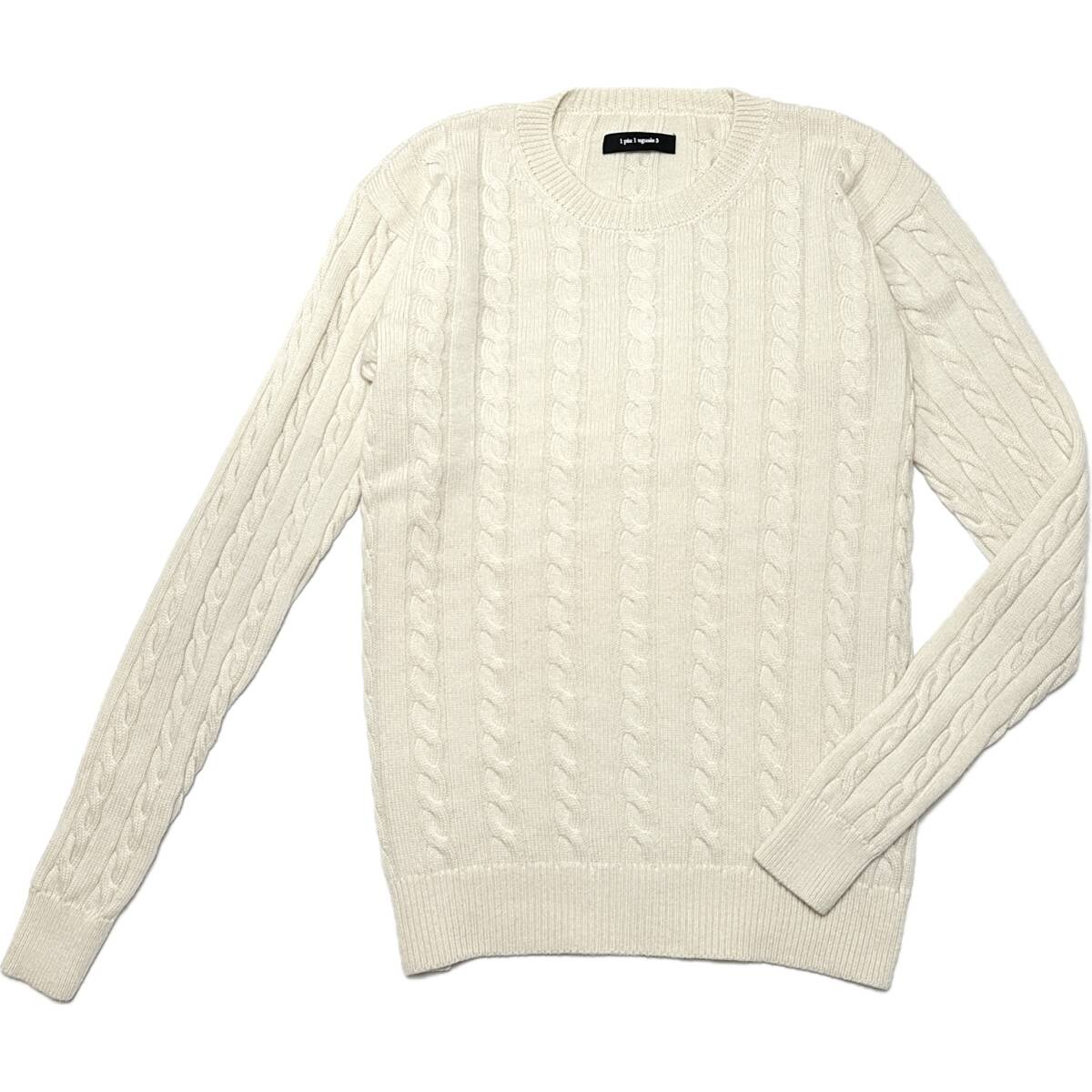 定価4.4万 1piu1uguale3 EXTRAFINE MERINO CASHWOOL CABLE CREW KNIT Ⅴサイズ メリノウールケーブルニット wjk akm ジュンハシモト