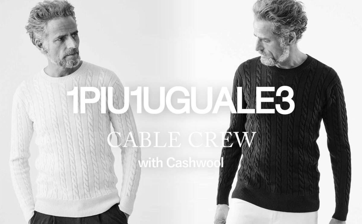 1piu1uguale3 EXTRAFINE MERINO CASHWOOL CABLE CREW KNIT