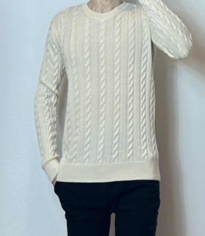 全面に総柄で細いケーブルで編み込んだCREW NECKは