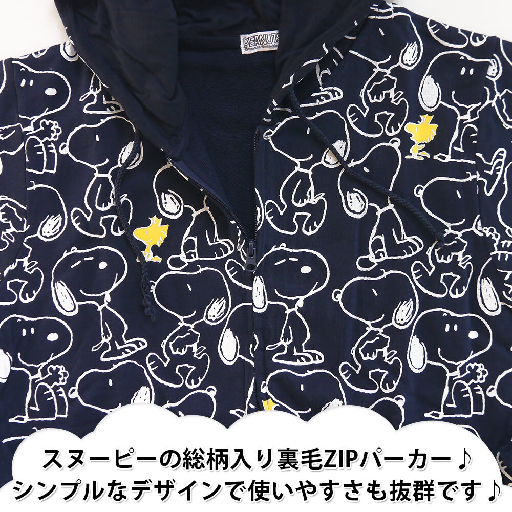 正規店仕入れの新品未使用品です 綿とポリエステル素材で、吸汗速乾に優れます スヌーピーの総柄入り裏毛ZIPパーカー シンプルなデザインで使いやすさも抜群です |
