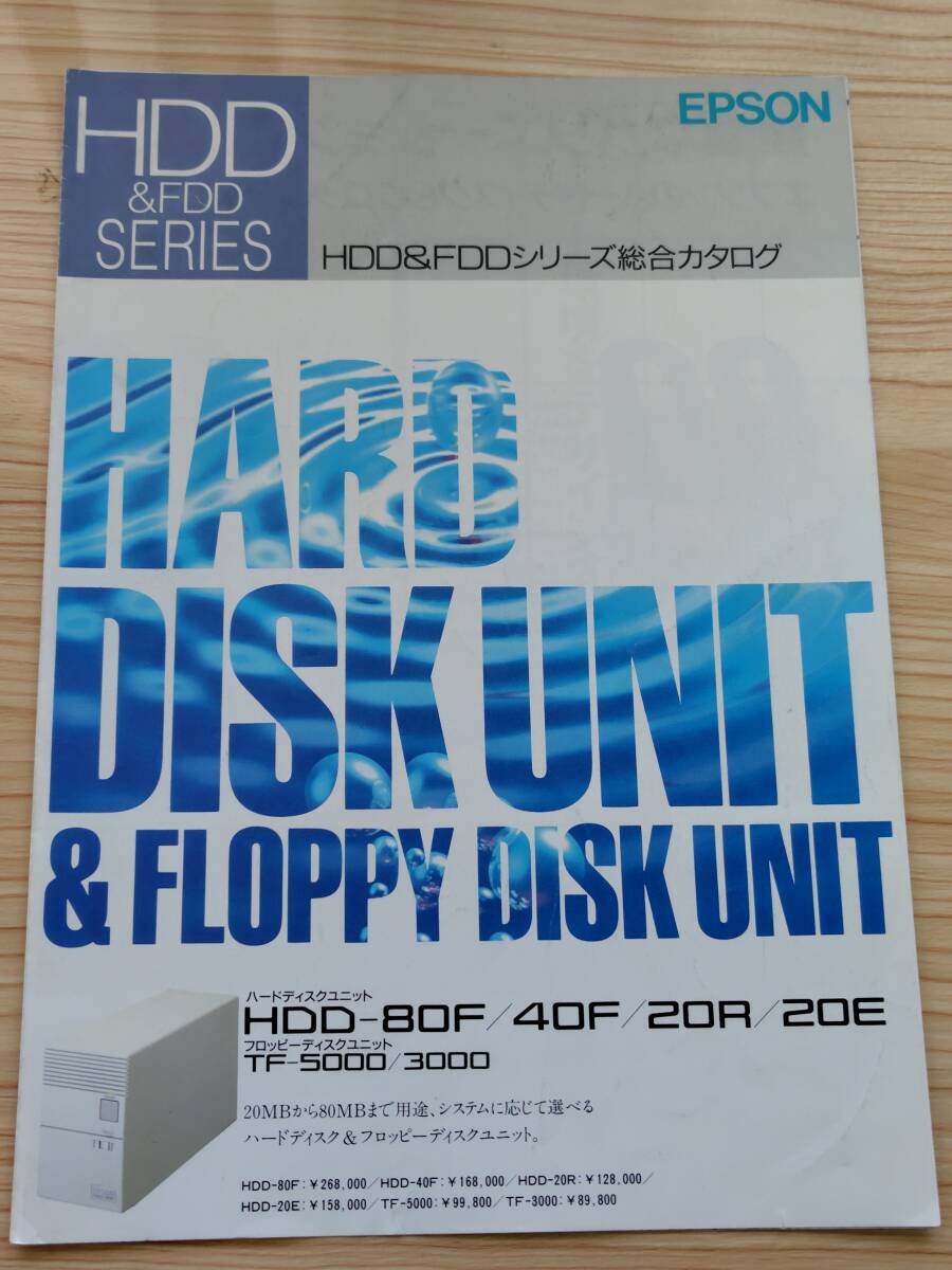 EPSON HDD&FDDシリーズ HDD-80F/40F/20R/20E/ TF-5000/3000 総合カタログ  A4判 6ページ 1990年7月