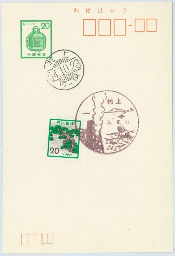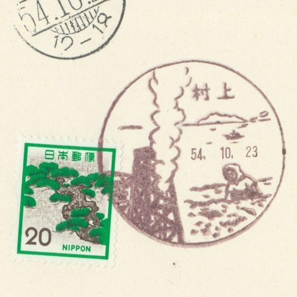 風景印☆平日☆新潟・村上・S54.10.23・櫛型印共