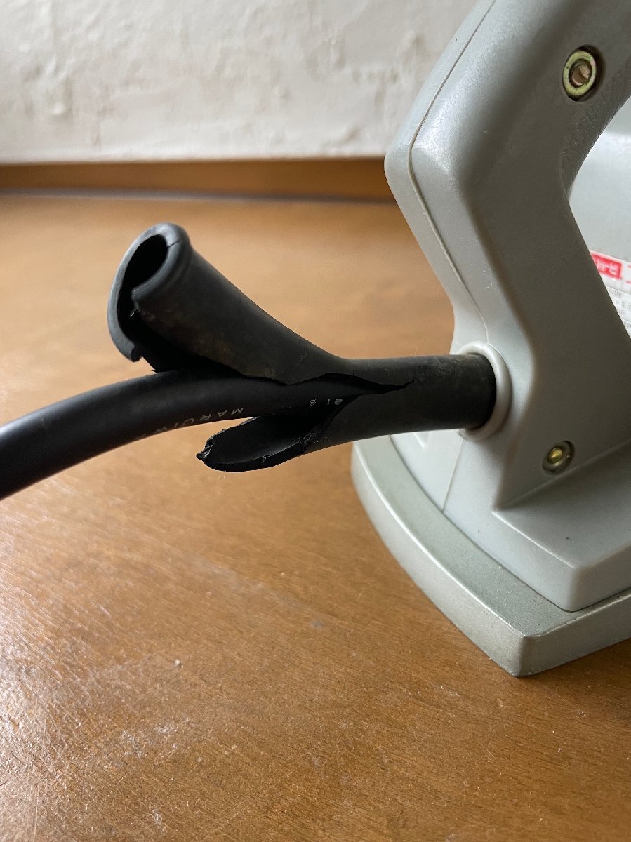 ■メーカー RYOBI ■型番 L-150N ■詳細 ・電圧 100V ・電流 5.3A ・消費電力 510W ・回転数 15.000RPM ・カンナ刃巾 92mm ・重量 3.9kg ・切込み深さ 0~1mm ・写真で分かる通り、線が覆われているゴムのカバーが切れています。 ■状態 ①外観:傷や汚れあり ■動作 ・確認済み ■付属品 ・写真が全てです。 | |||