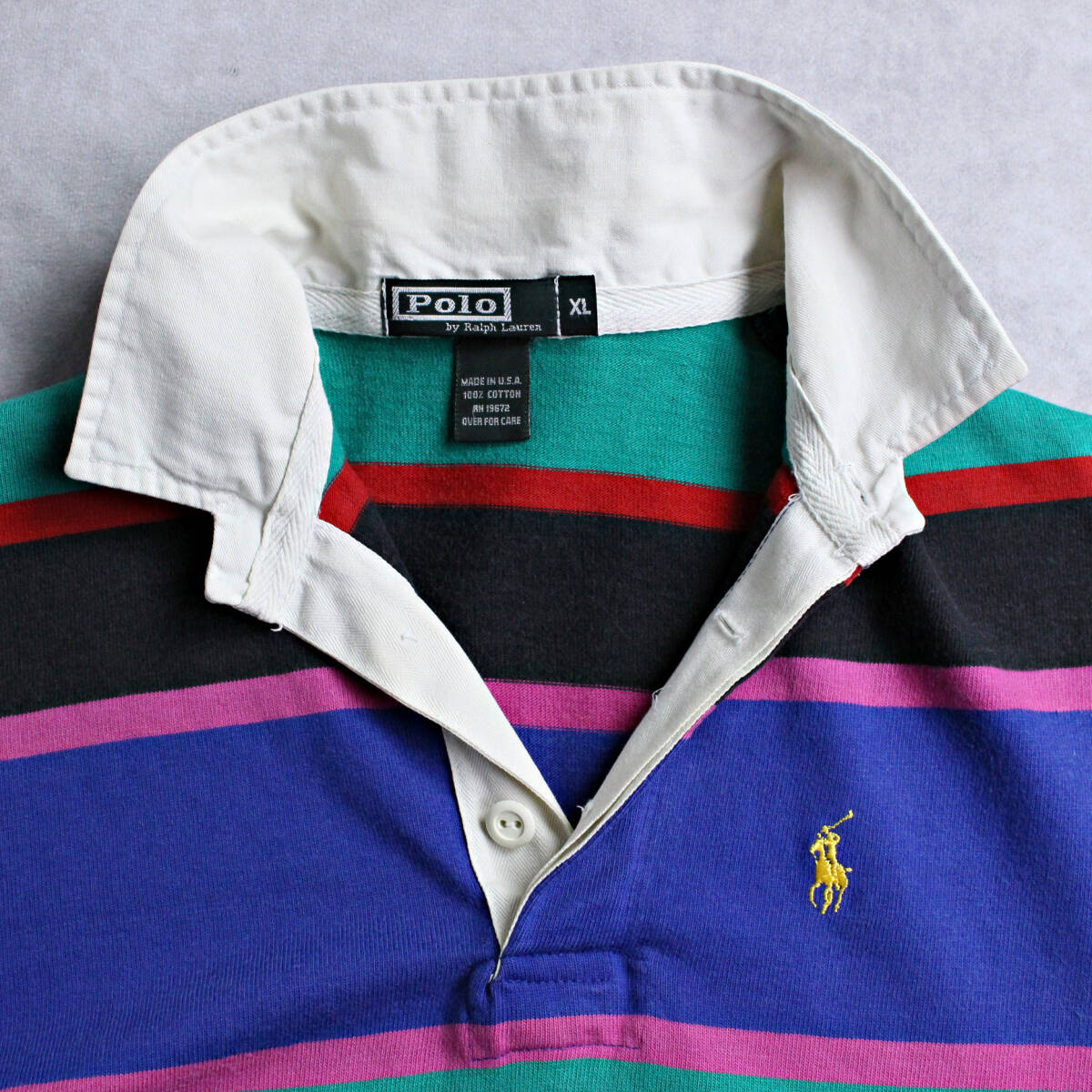 【Polo by Ralph Lauren】レア 80s USA製 緑タグ ボーダーラガーシャツ ボーイズXLサイズ ビンテージ ポロラルフローレン