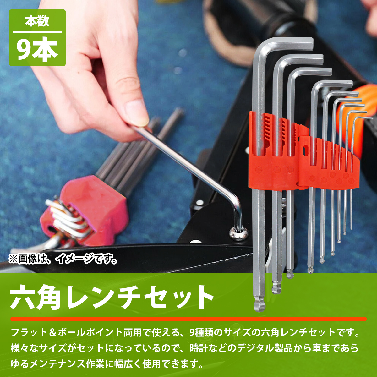 L型 六角 レンチ ボールポイント ホルダー付 1.5mm/2/2.5/3/4/5/6/8/10mm 9本 セット ロングタイプ ホロー 六角棒 6角 工具