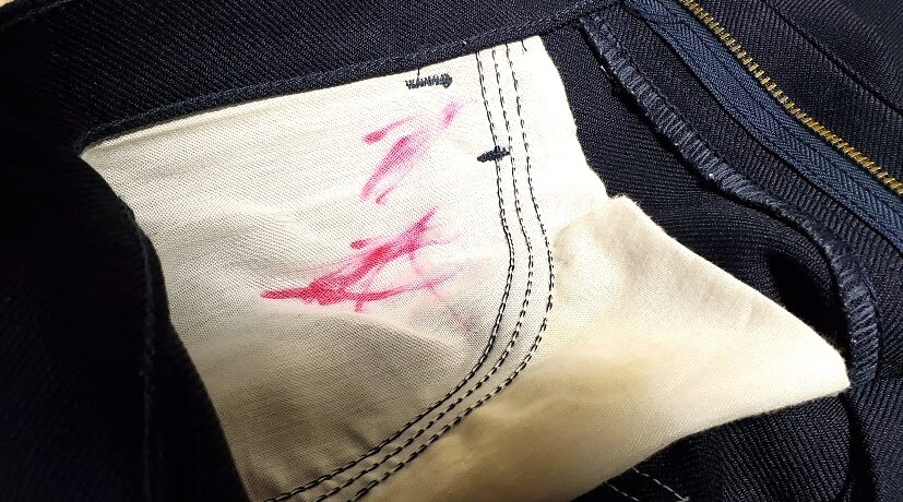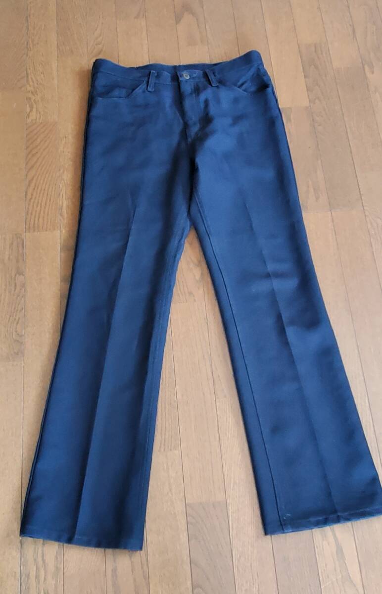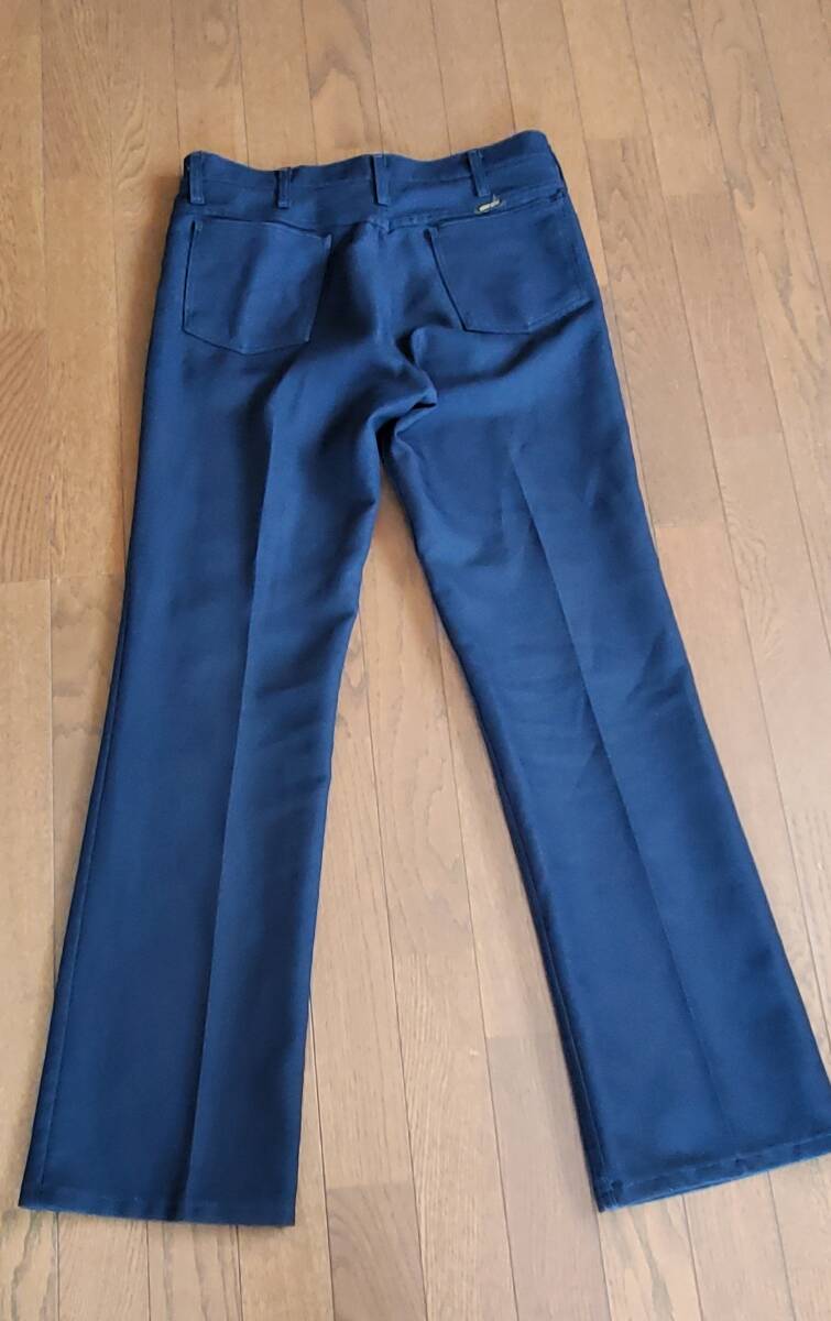 シャープなシルエットなのでカジュアルからフォーマルまで活用できます。 左ポケット裏側に赤マジック?汚れがあります。画像にてご確認ください。 ◎カラー ネイビー ◎サイズ 34×34(平置き採寸/ウエスト42.5、股下84.5、総丈101.5、裾幅21.5cm) ◎素材 ポリエステル100% | ||