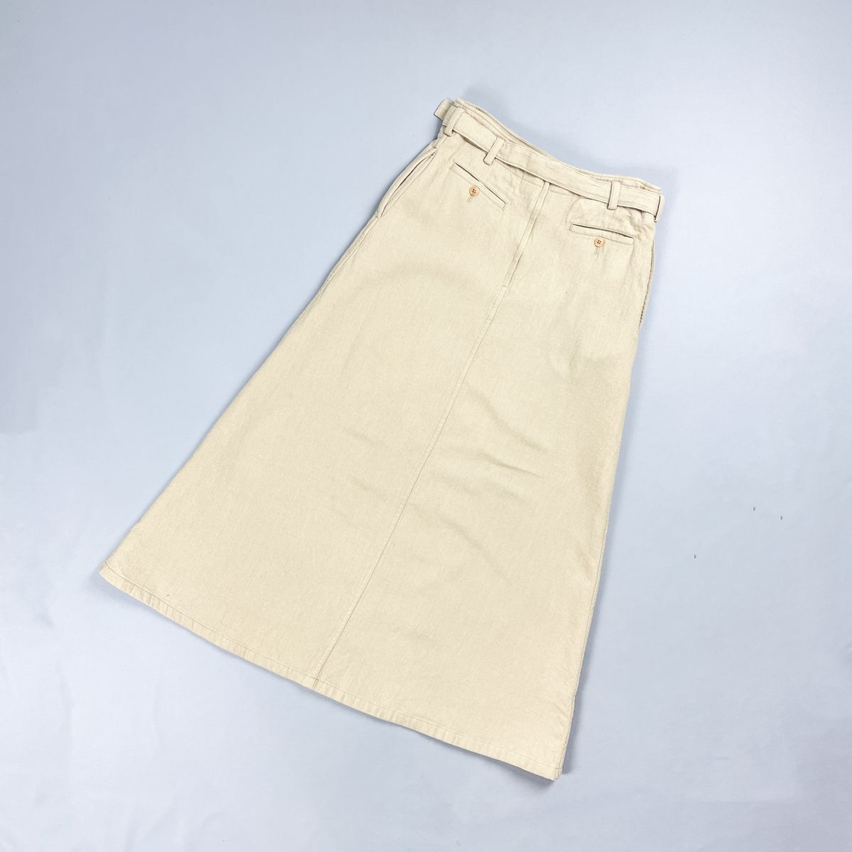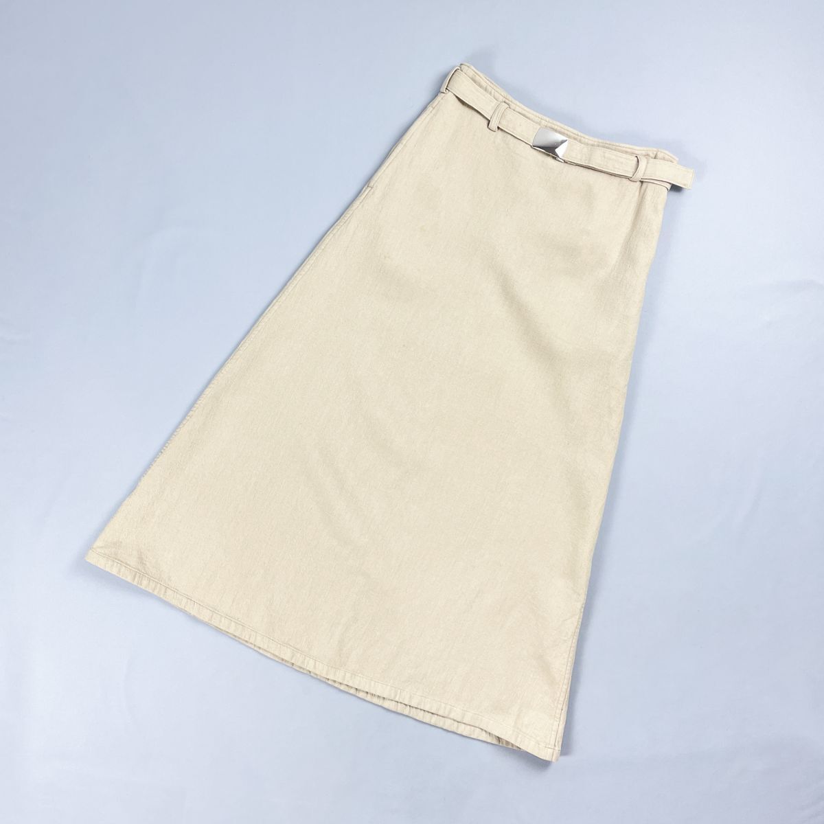 Y's ワイズ ベルト付 Aラインスカート 台形スカート ロング丈 ベージュ サイズF*BD463