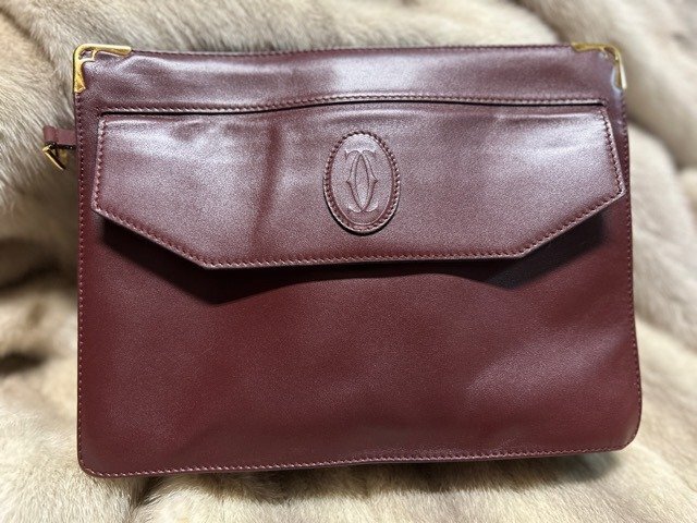 ◇カルティエ ステイタスアイテム 【マストライン◇クラッチバッグ セカンドバッグ】CARTIER  ボルドーカラー レザーが美しいQ04194