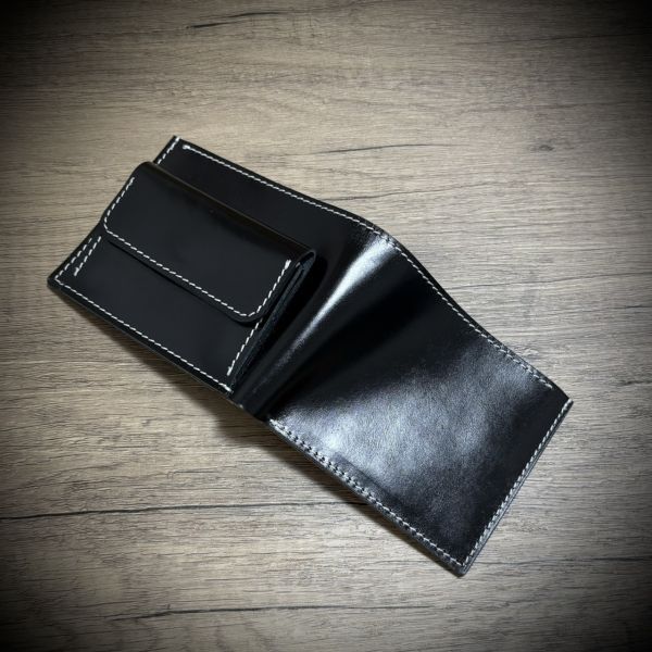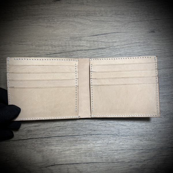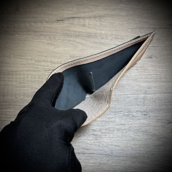 内装革はソフトなヌメ革を使用。柔らかくカードやお金の出し入れもしやすいです。