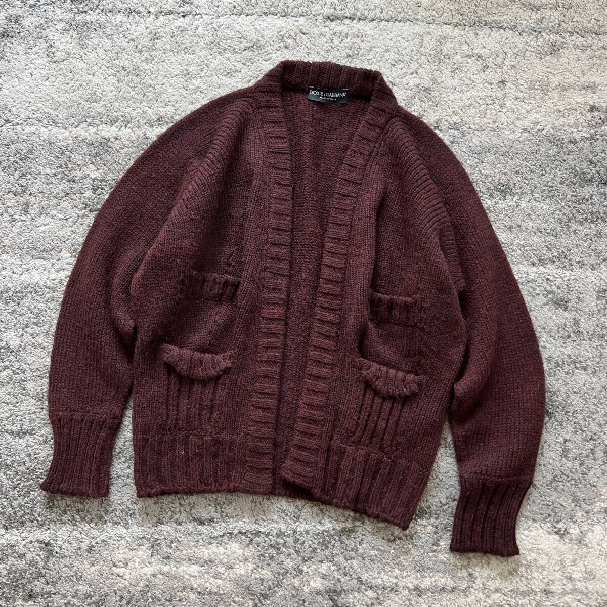 ◆DOLCE&GABBANA ドルチェ&ガッバーナ ブラックラベル カーディガン ボルドー系 デザイン編み レディース メインライン 36 Sサイズ