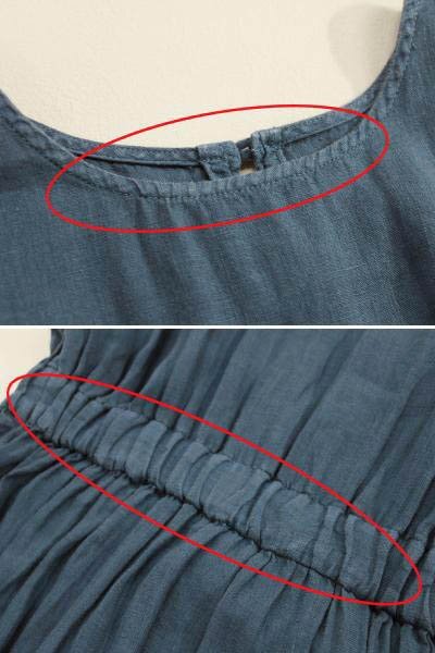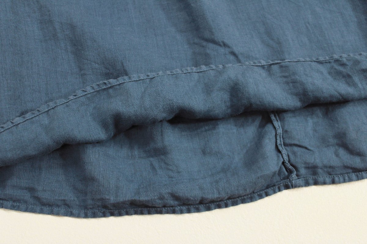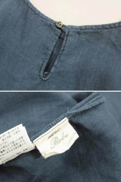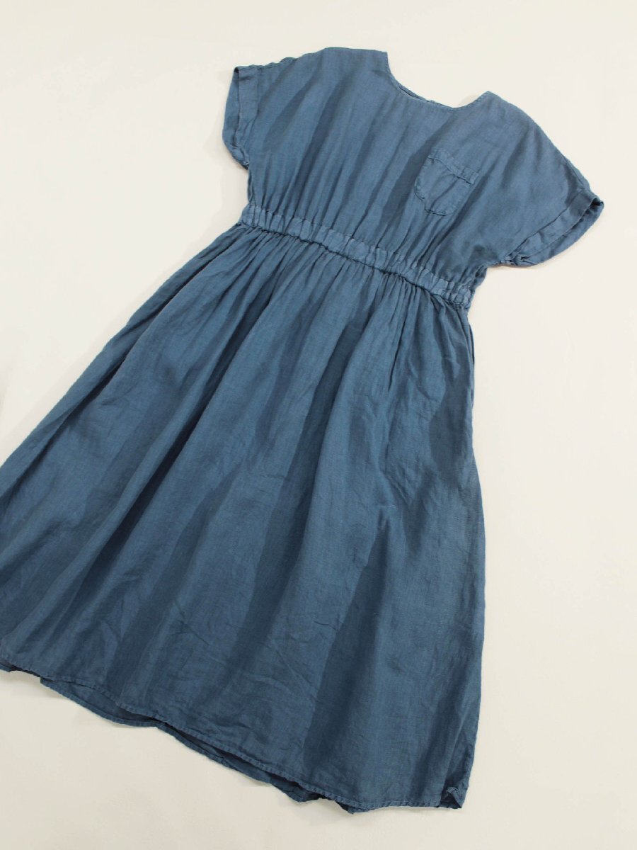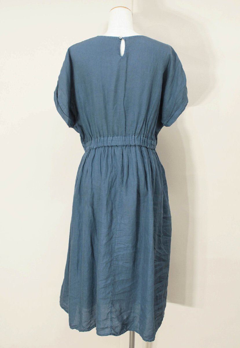nest Robeネストローブ/リネン100%ウエストゴム半袖ロングワンピース:灰青yw656