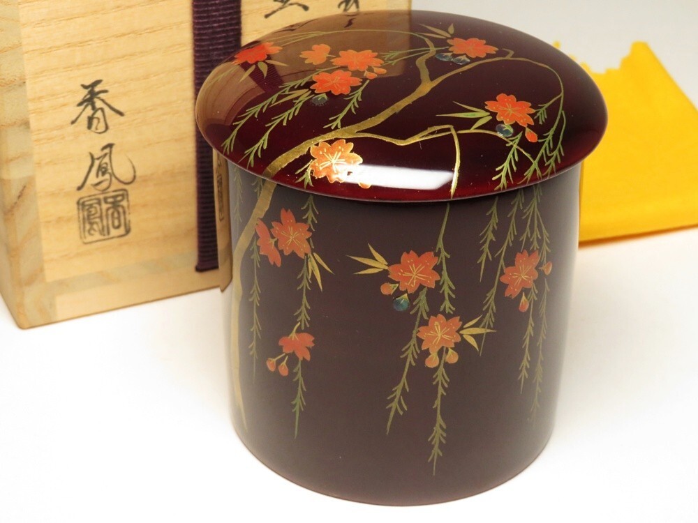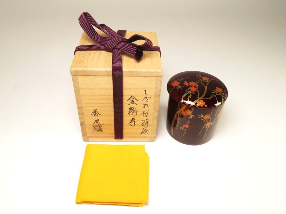 ●明治~大正 茶道具 しだれ桜蒔絵 金輪時 香鳳作になります。古い物ですが極力状態の良い作品を出品しておりますので是非ご覧ください。