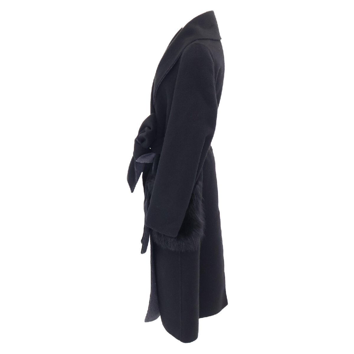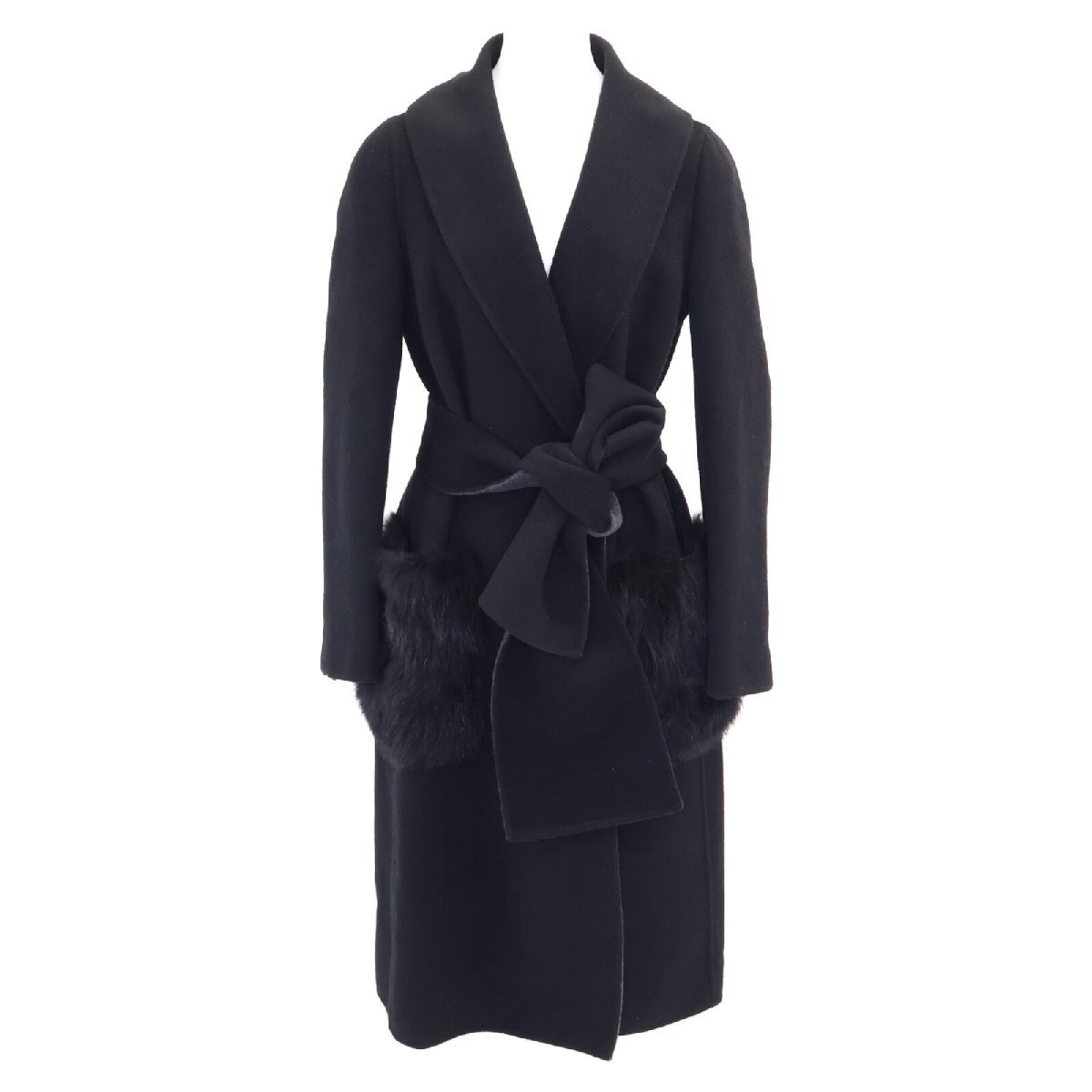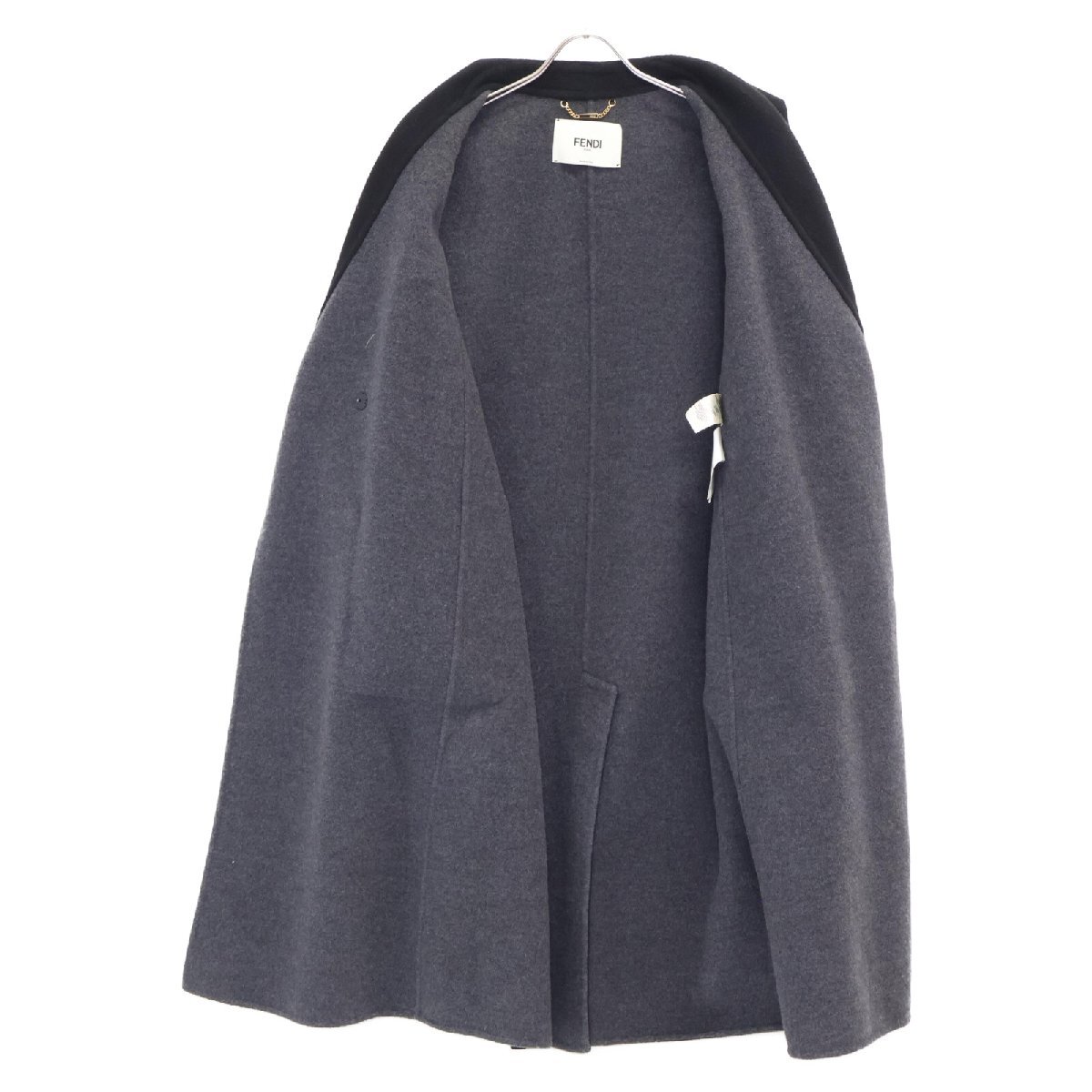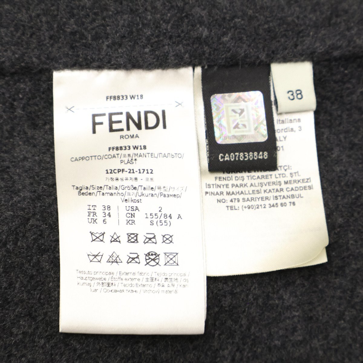 美品 国内正規 FENDI フェンディ ダブルフェイス カシミヤ100 ファー付き コート 38 ブラック/チャコールグレー レディース