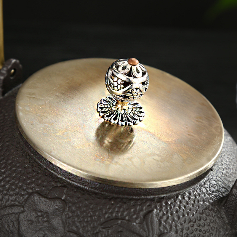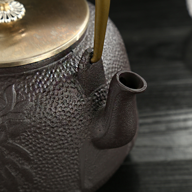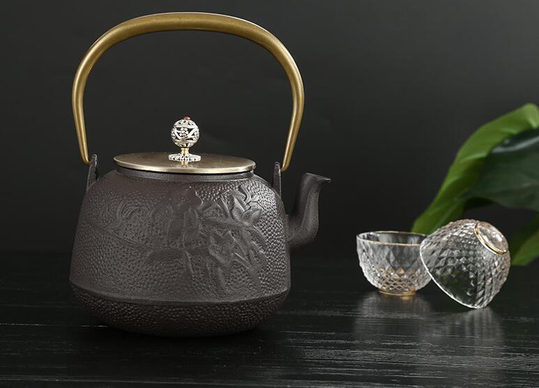 新作 鉄瓶 鉄びん 鋳鉄 急須 古風鉄瓶 鉄分補給 提梁壺 茶壺 水壷 煮茶壷 夜間 茶道具 おしゃれ クチナシの花柄