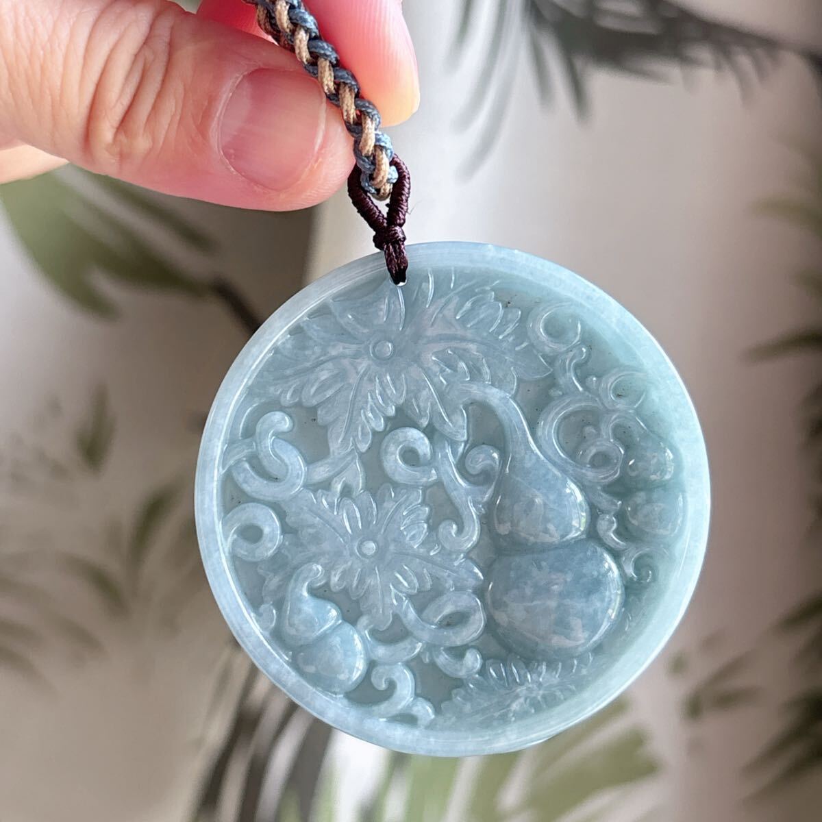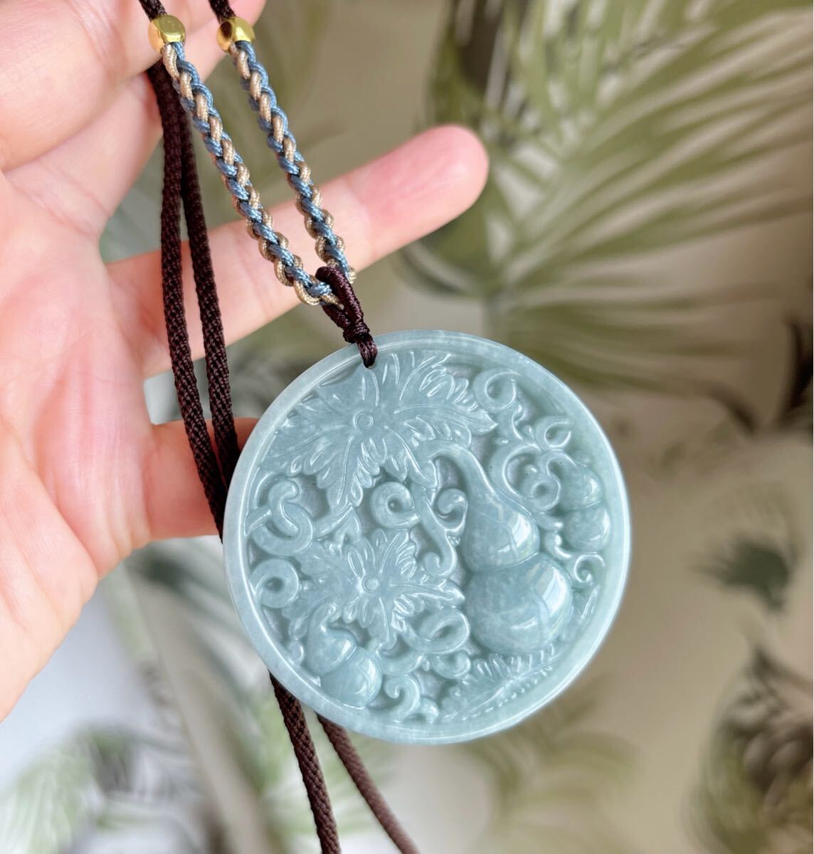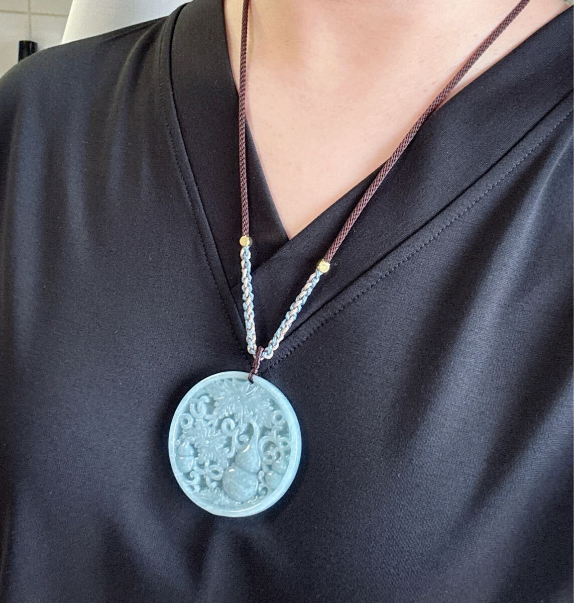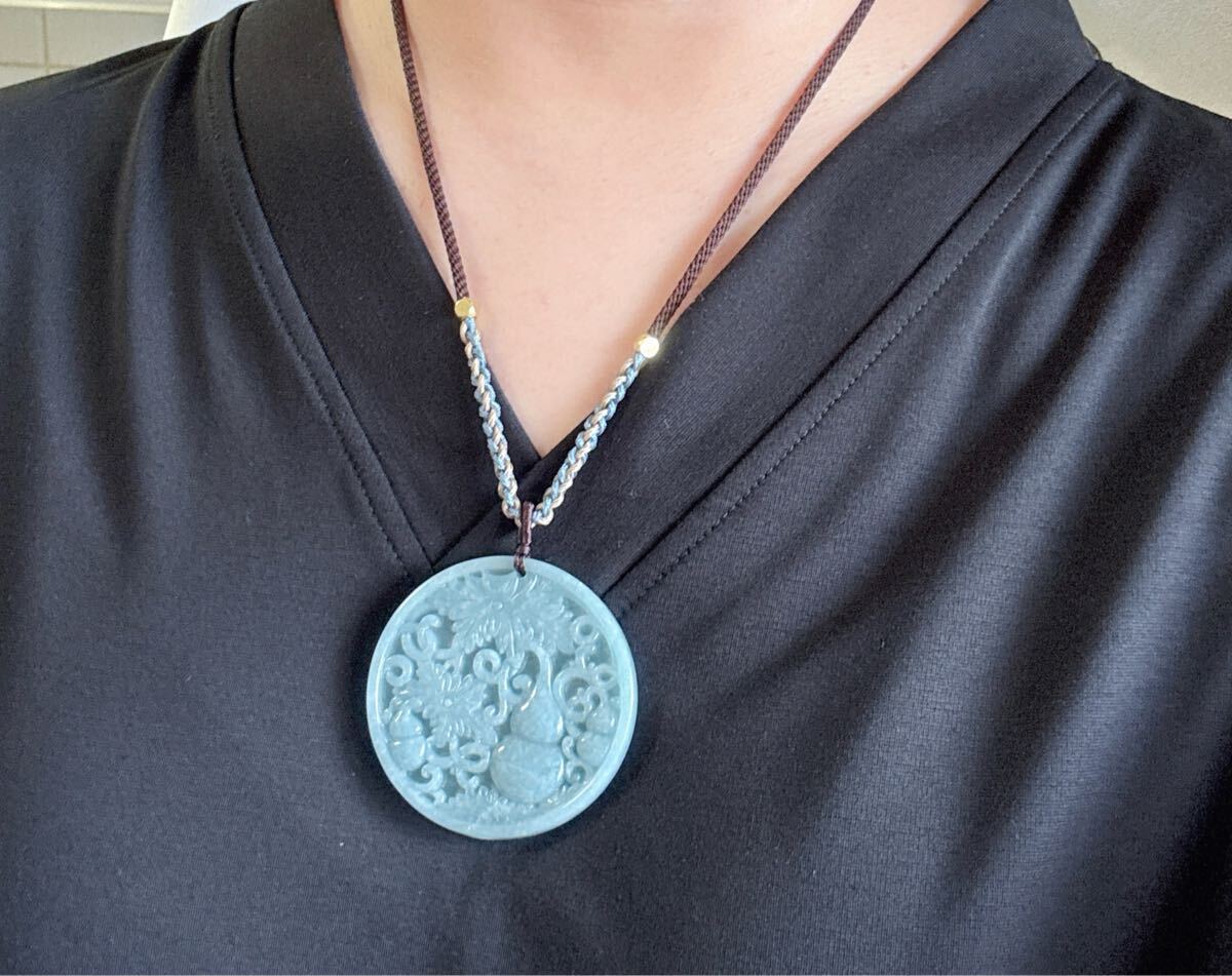 天然石ミャンマーの本翡翠ひょうたん (A)札のサイズ:約直径 52.5mm*厚さ6mm;