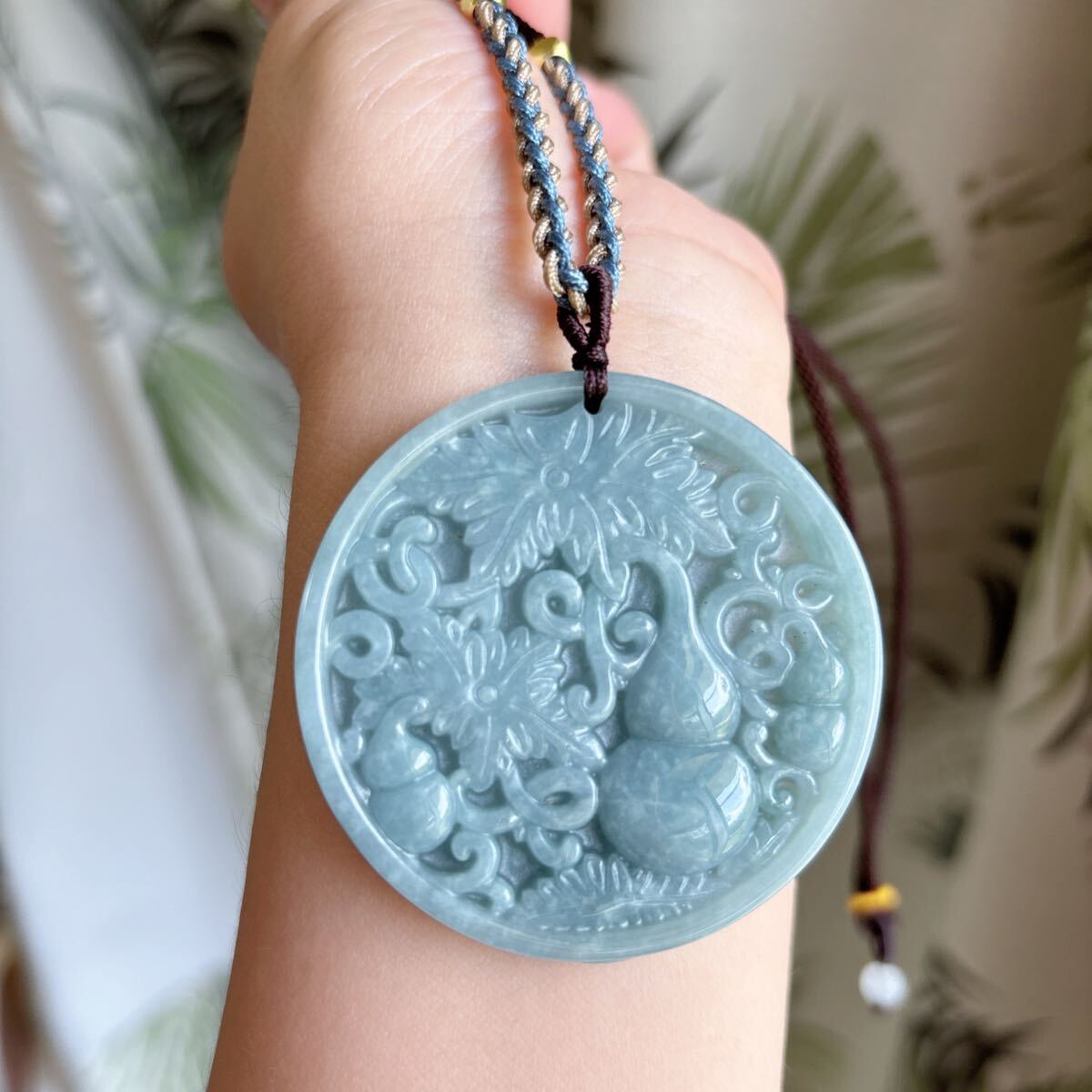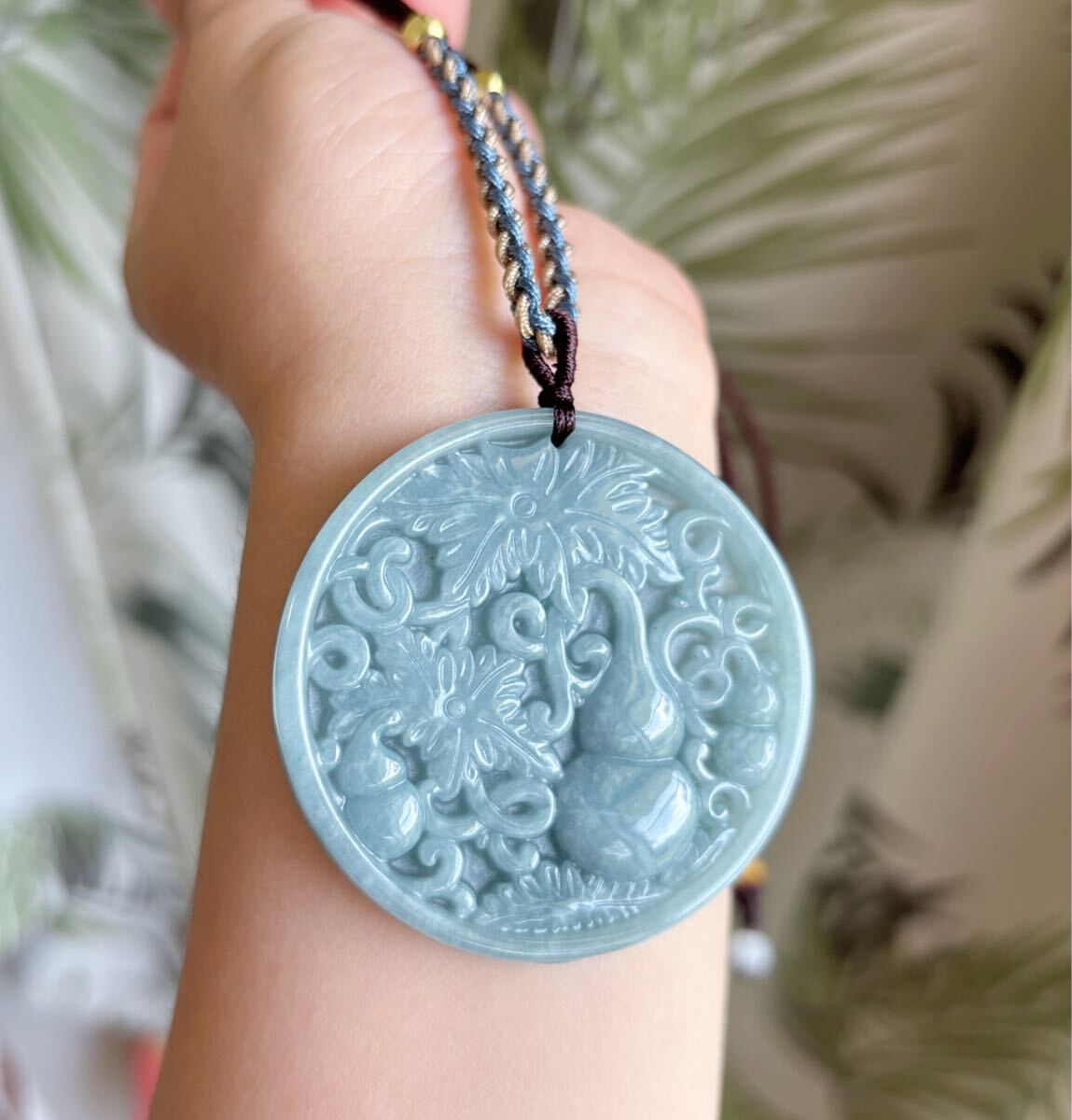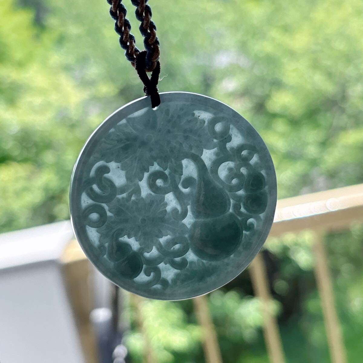 天然石ミャンマーの本翡翠ひょうたん (A)札のサイズ:約直径 52.5mm*厚さ6mm;