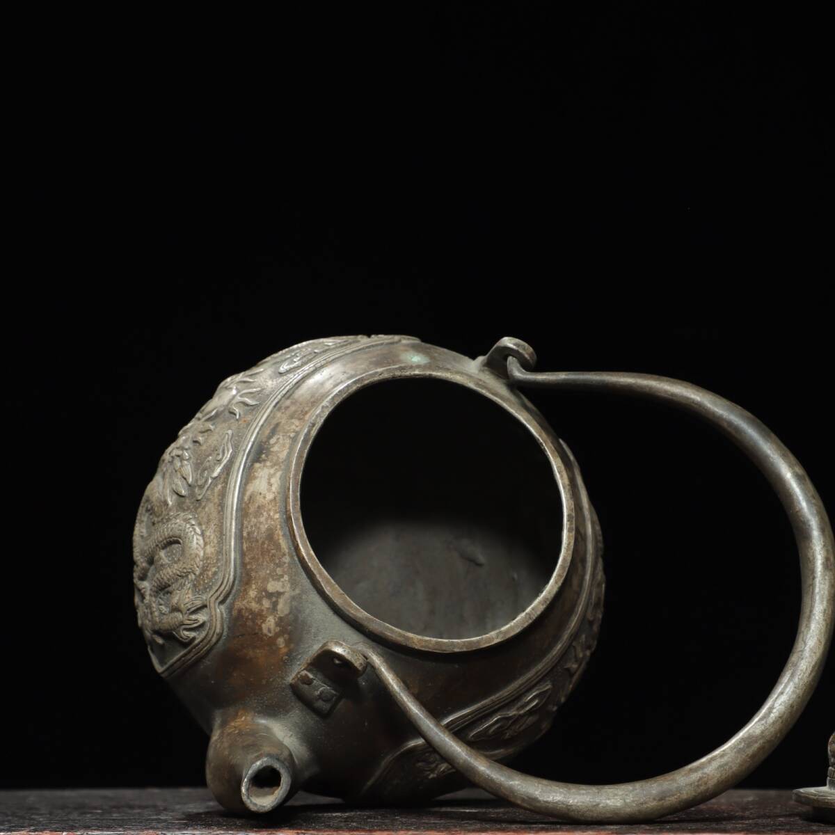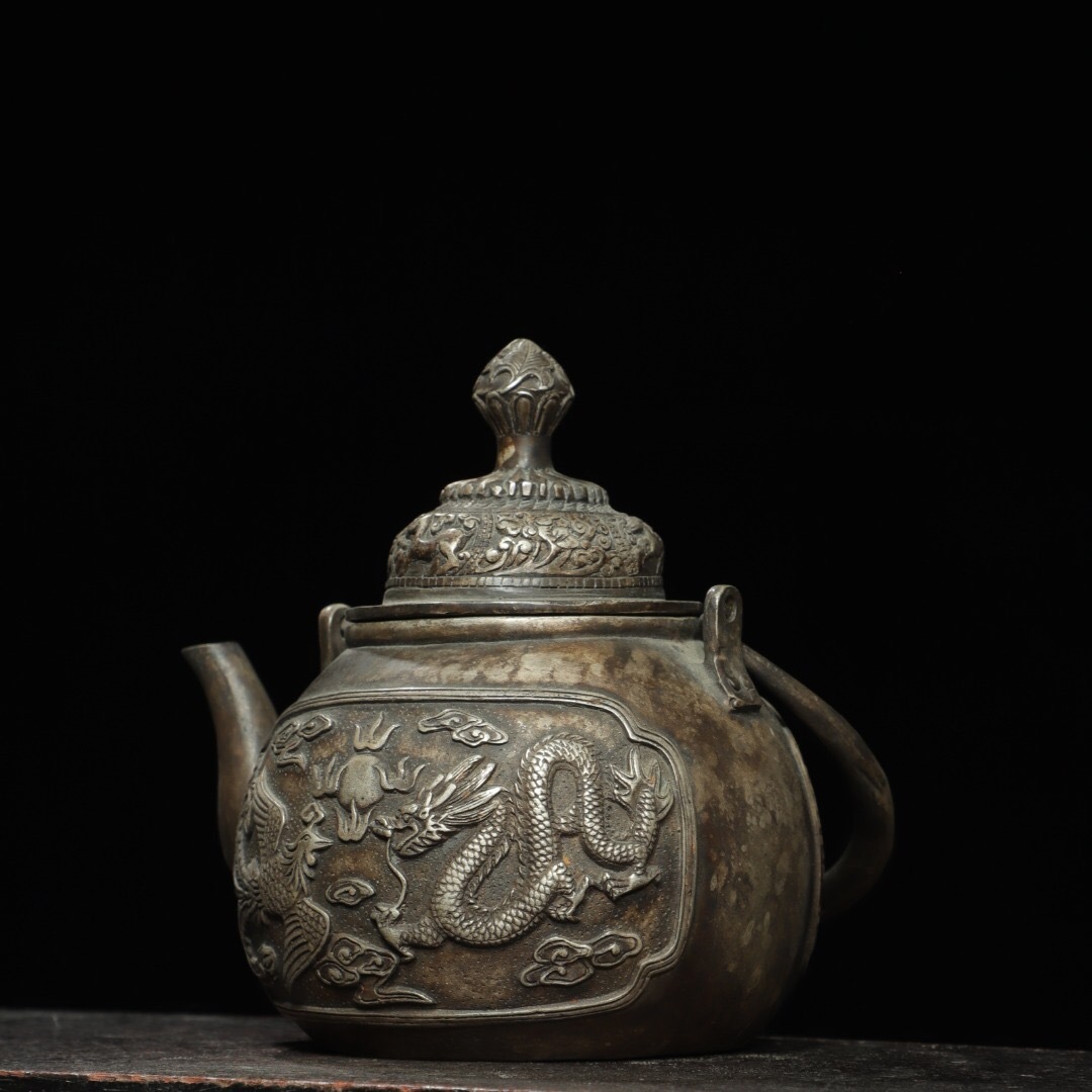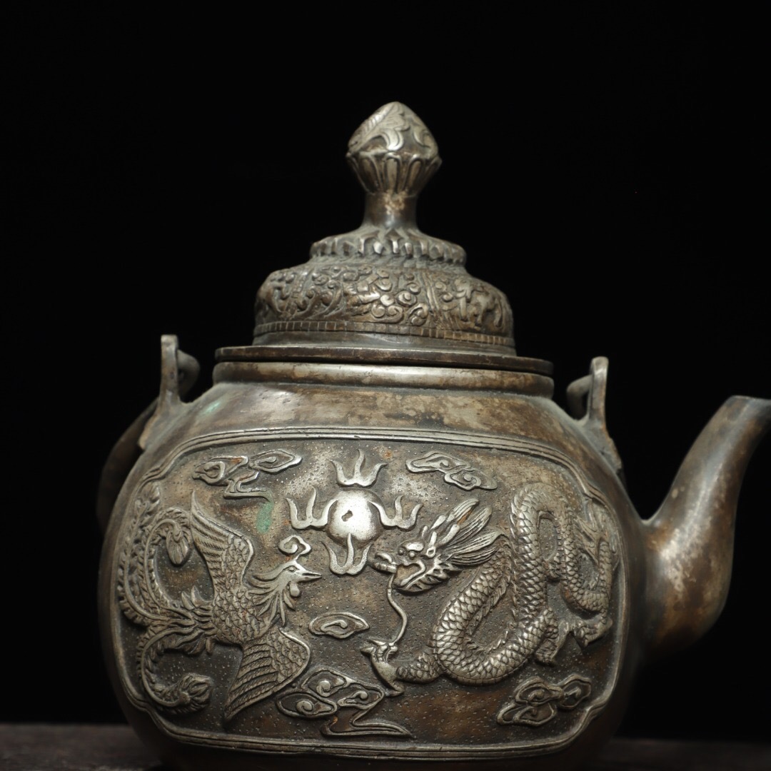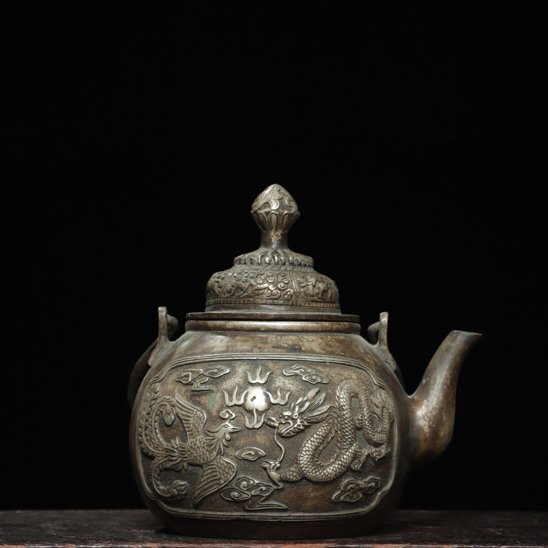 【超珍館蔵】銅製 銀鍍 龍鳳壺 置物 賞物 古賞物 古美術品 稀少珍蔵品