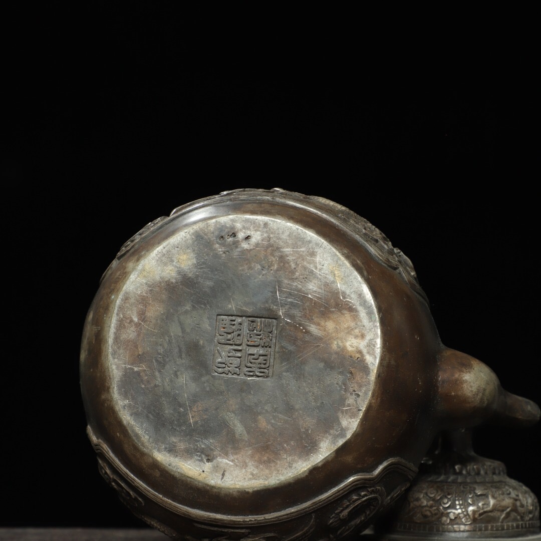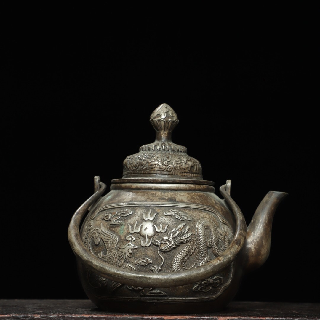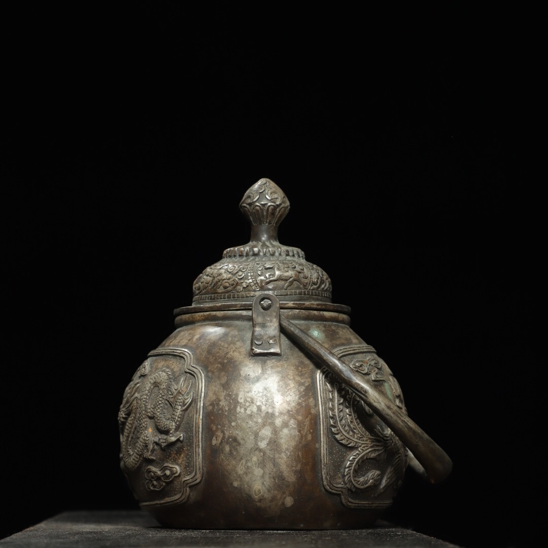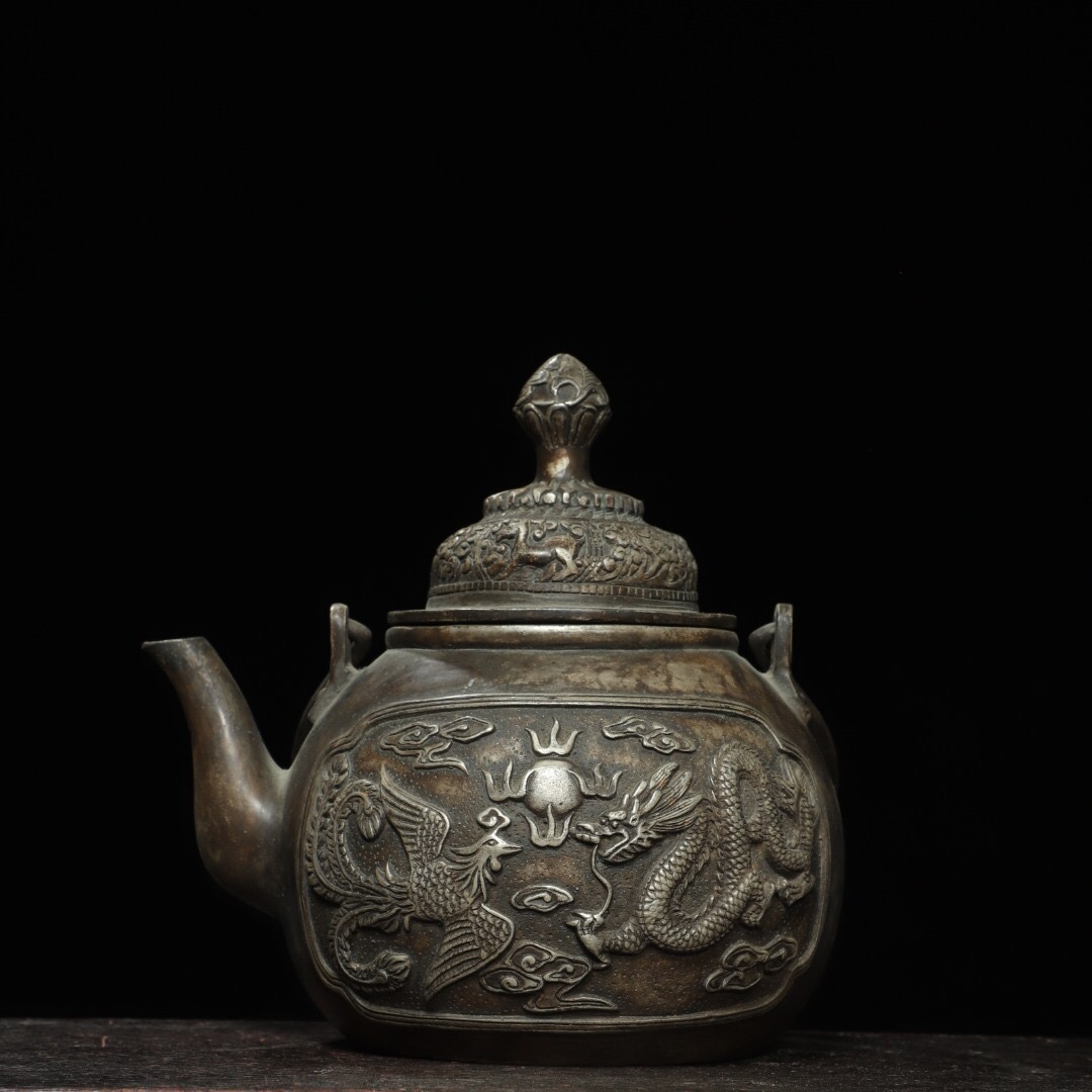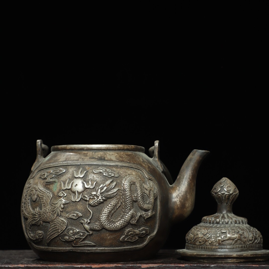 【超珍館蔵】銅製 銀鍍 龍鳳壺 置物 賞物 古賞物 古美術品 稀少珍蔵品