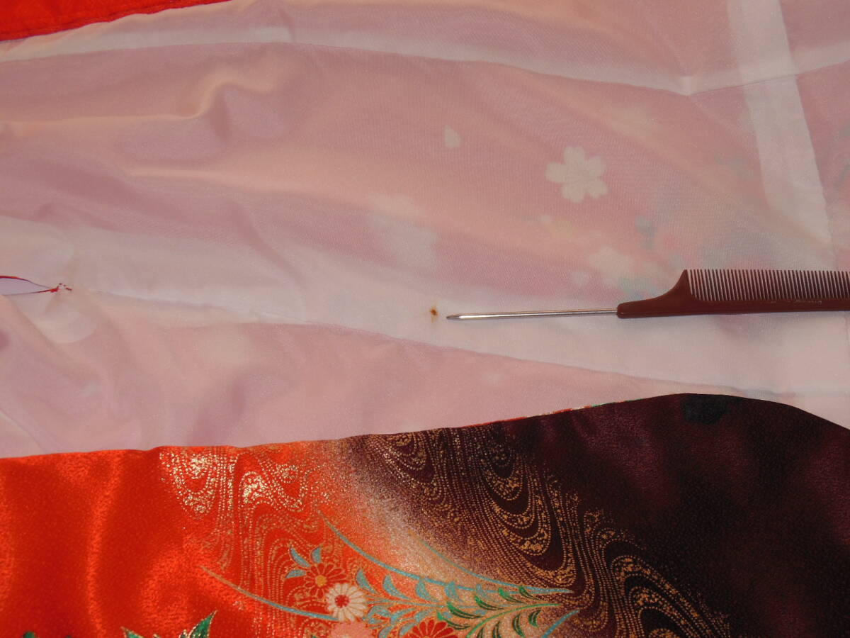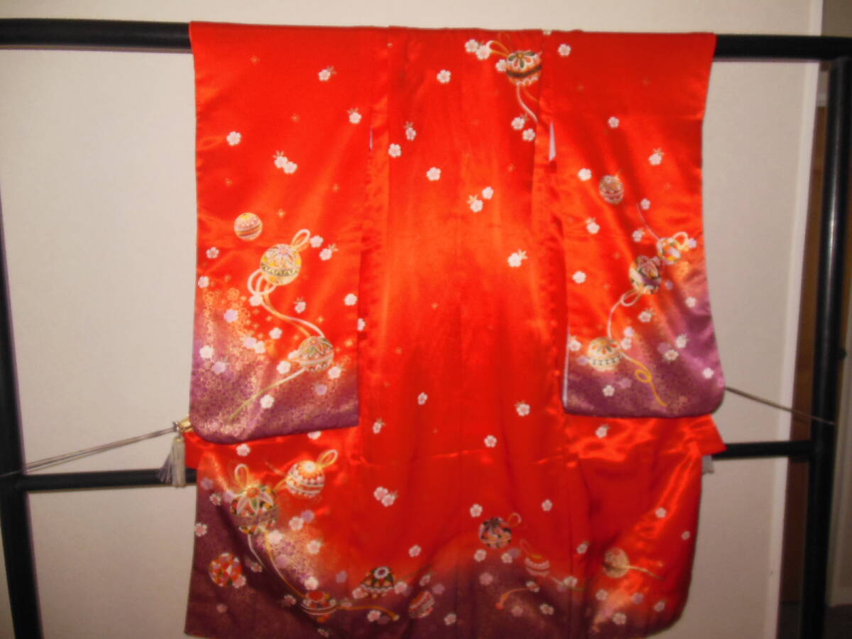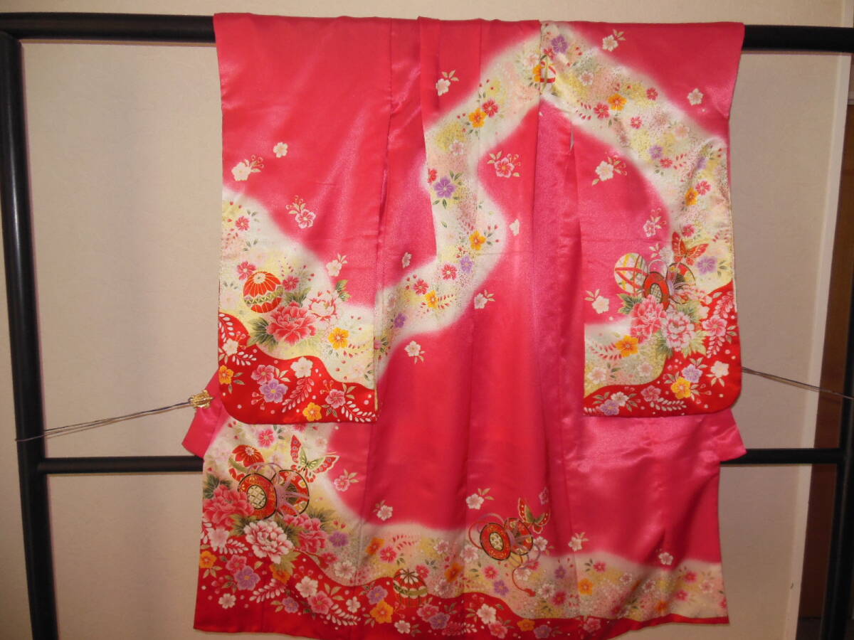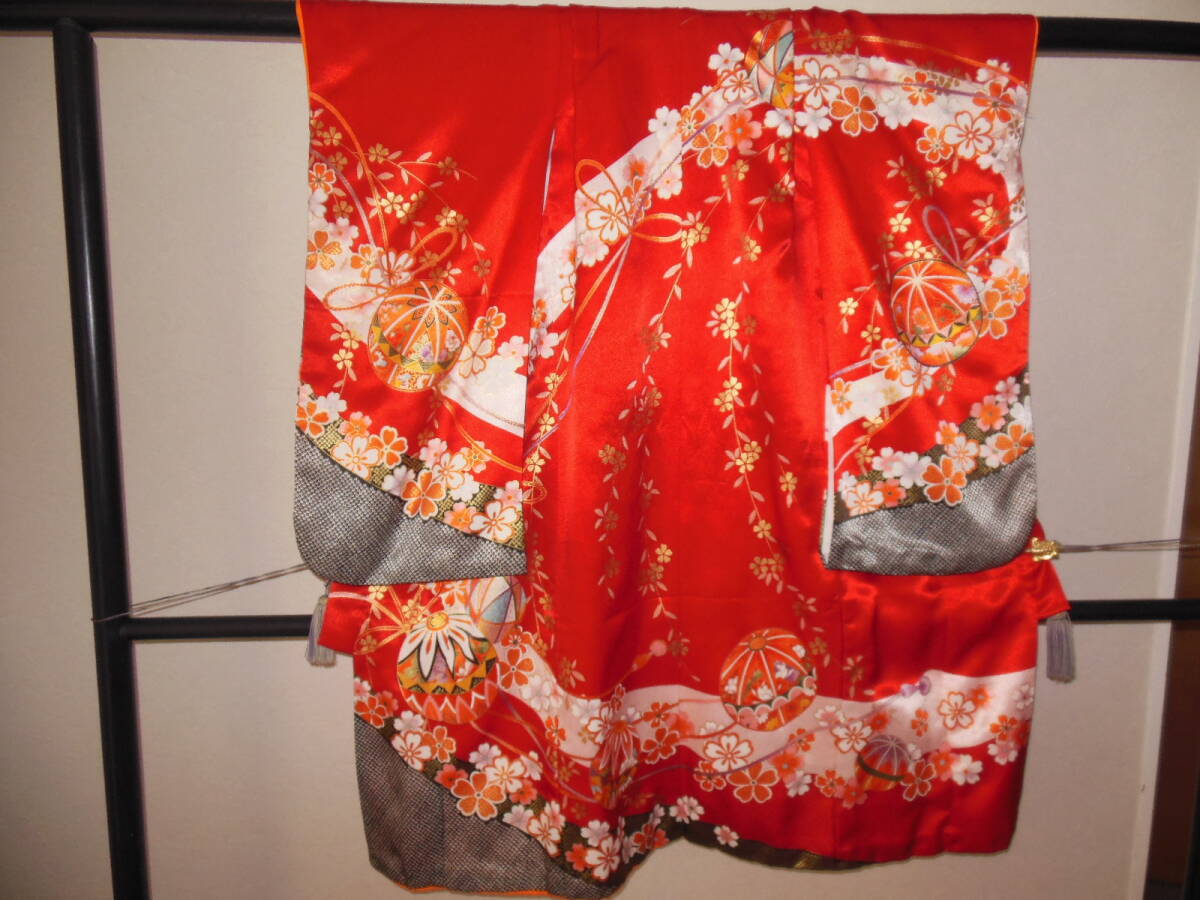 3歳用の着物です。写真撮りにしか使用していませんが、袖や前部分にシミが付いています。