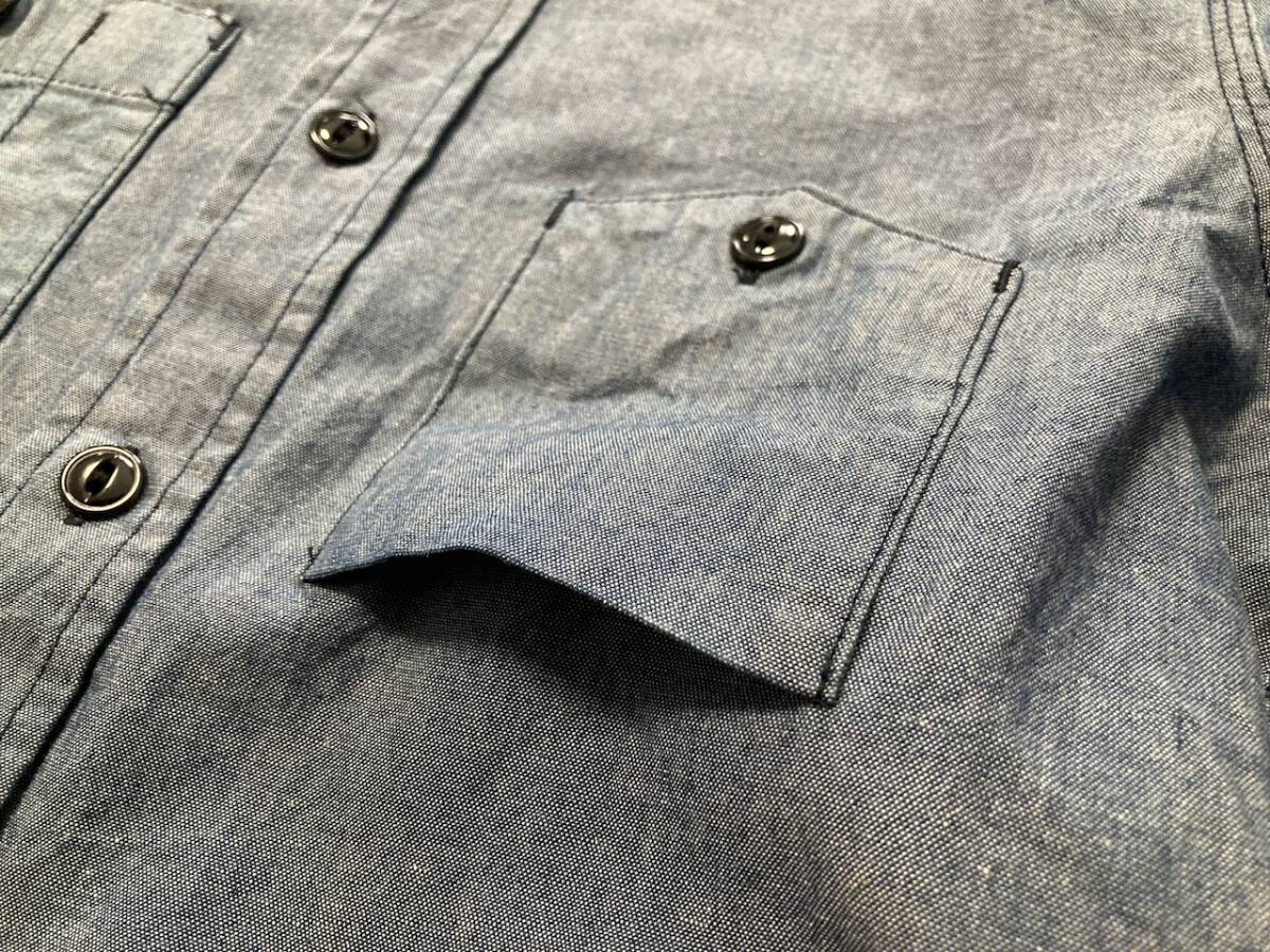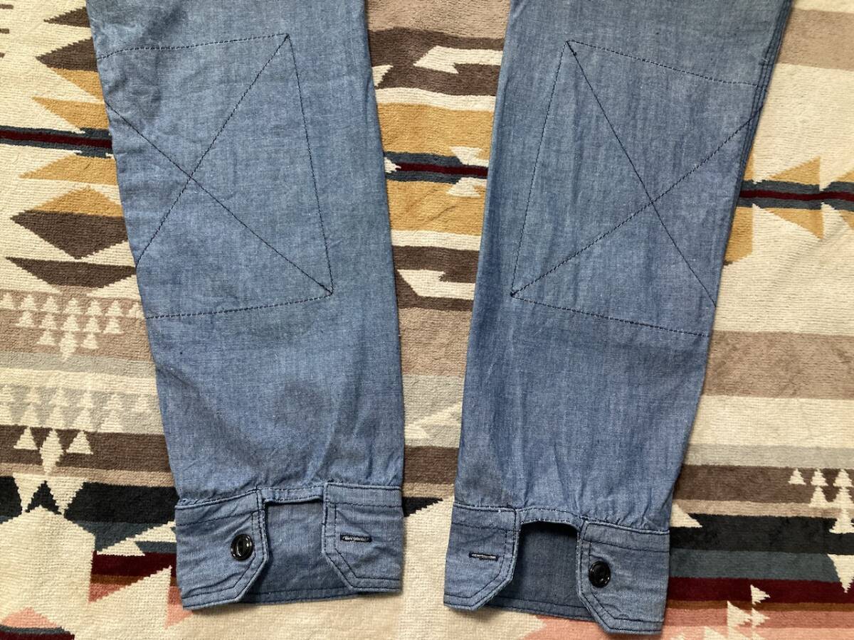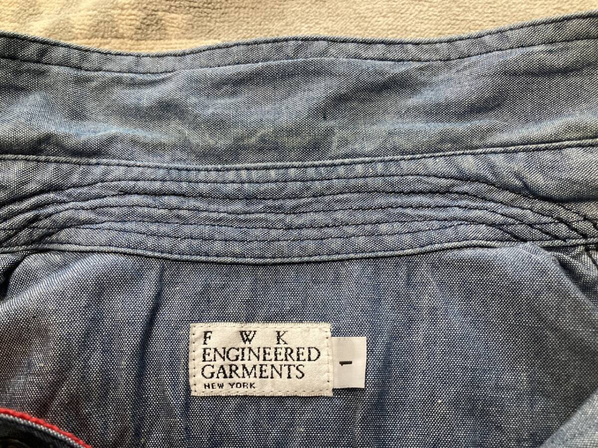 商品名:Engineered Garments 長袖シャツ サイズ:表記1 平置き:肩幅37cm 身幅(脇下~脇下)47cm 着丈(襟付根~裾)66cm 袖丈(肩~袖裾)58cm ※素人採寸の為多少の誤差はご了承ください。 カラー:ブルー系 状態:(株)ネペンテス。MADE IN USA。コットン100%。ボタンポケット×2。肘内側にあて布付き。換えボタン。裾マチ。襟山に若干の変色あり。その他目立ったダメージ等なく良い方だと思います。 発送方法:レターパックプラス(配達記録付600円)orレターパックライト(配達記録なし430円) ※古着になりますので神経質な方、ご理解の無い方の御入札はお控え下さい。送料、振込手数料は落札者様の御負担となります。ノークレーム、ノーリターンでお願い致します。