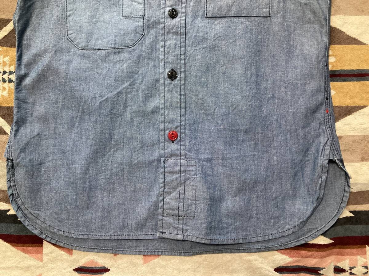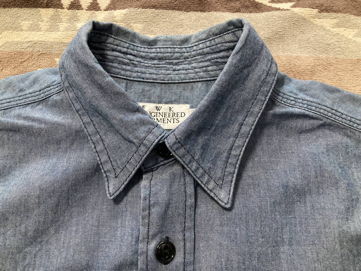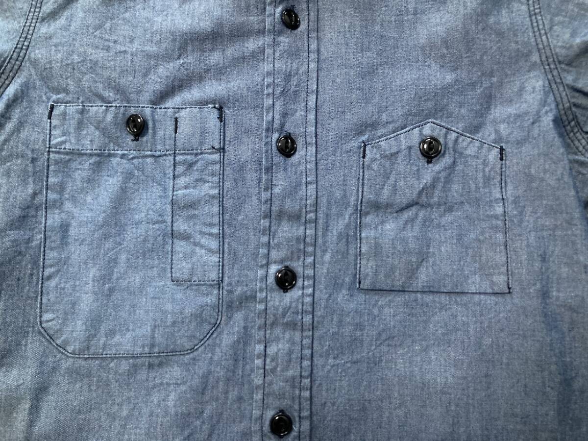 商品名:Engineered Garments 長袖シャツ サイズ:表記1 平置き:肩幅37cm 身幅(脇下~脇下)47cm 着丈(襟付根~裾)66cm 袖丈(肩~袖裾)58cm ※素人採寸の為多少の誤差はご了承ください。 カラー:ブルー系 状態:(株)ネペンテス。MADE IN USA。コットン100%。ボタンポケット×2。肘内側にあて布付き。換えボタン。裾マチ。襟山に若干の変色あり。その他目立ったダメージ等なく良い方だと思います。 発送方法:レターパックプラス(配達記録付600円)orレターパックライト(配達記録なし430円) ※古着になりますので神経質な方、ご理解の無い方の御入札はお控え下さい。送料、振込手数料は落札者様の御負担となります。ノークレーム、ノーリターンでお願い致します。
