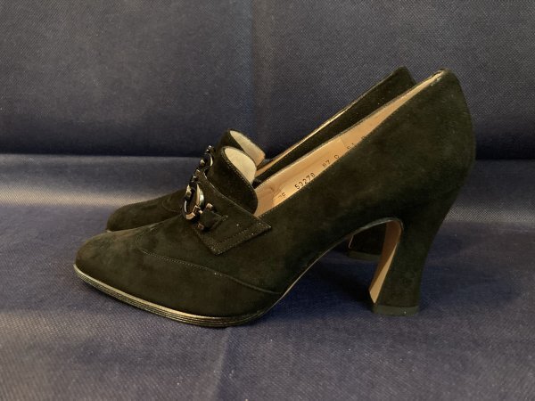 ★ フェラガモ SALVATORE FERRAGAMO ガンチーニ パンプス ヒール約8cm イタリア製 51/2 23cm相当 スエード ブラック 美品 藤89 三