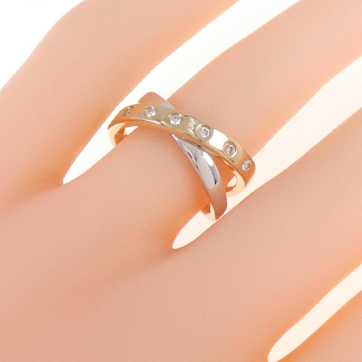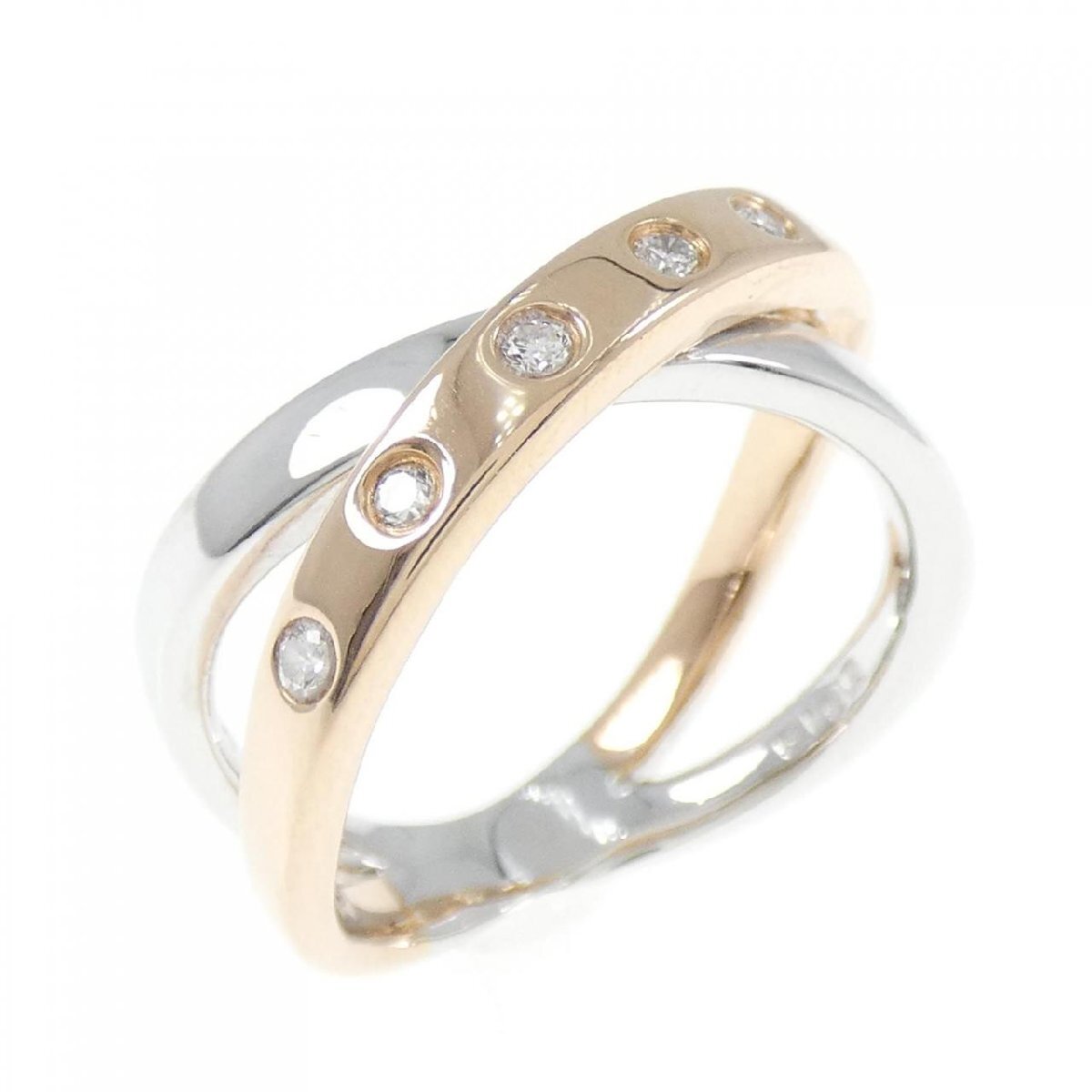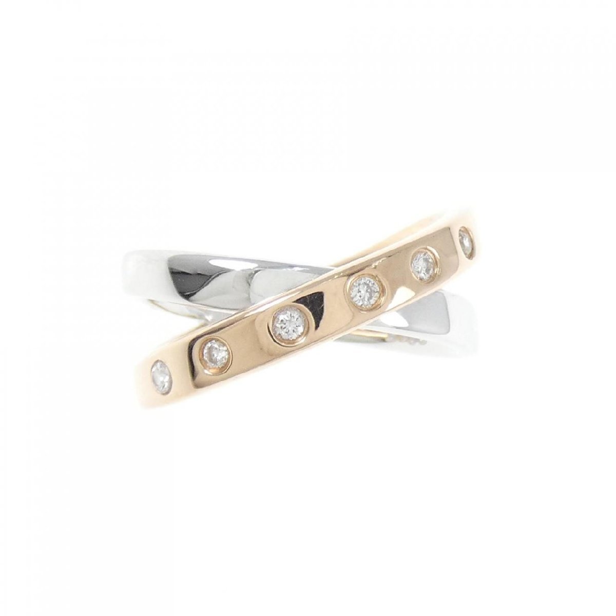 クリアに煌めくダイヤモンドが7石あしらわれています。ピンクゴールドとホワイトゴールドが美しく交差するリングです。