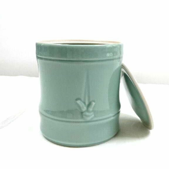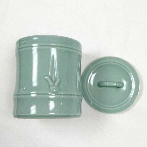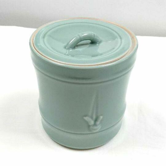【万古焼】水指 水差し 水入れ 青磁竹形 清宝窯 茶道具 茶器 陶器 美品