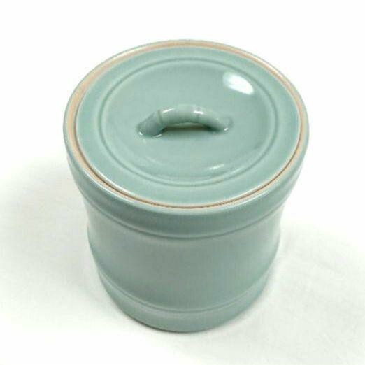 万古焼(三重県)で作られました水差しです。格調高い青磁で、胴に竹の節が2箇所、蓋の摘みも竹形です。
