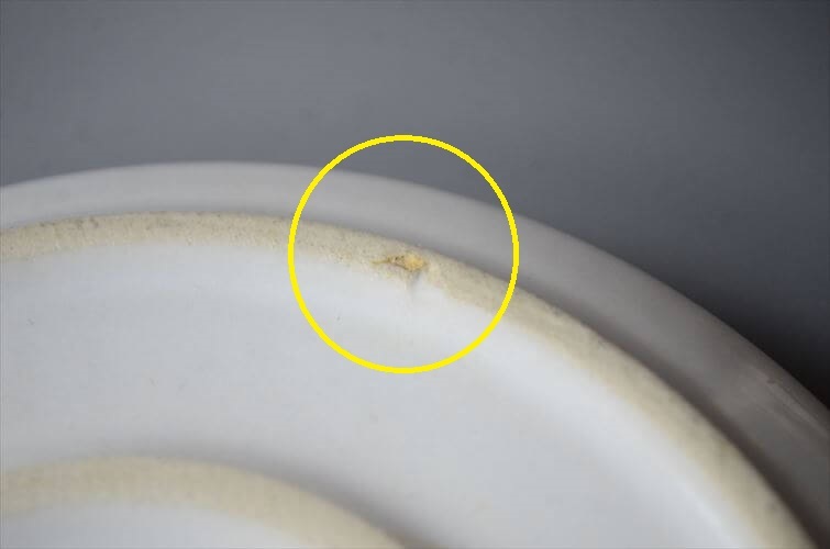 ソーサー高台に画像のような浅めの欠けがみられます。またカトラリー擦れがみられます。