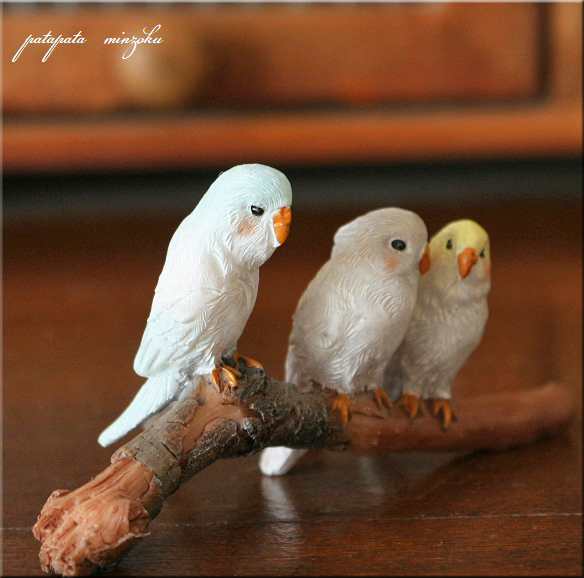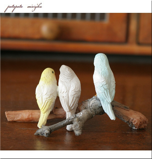 セキセイインコ 3羽 ダイカイ オブジェ3セキセイインコ 置物 鳥 小鳥 オカメインコ インコ 雑貨