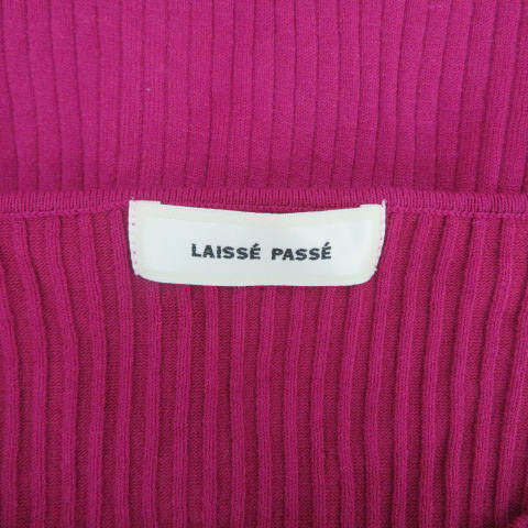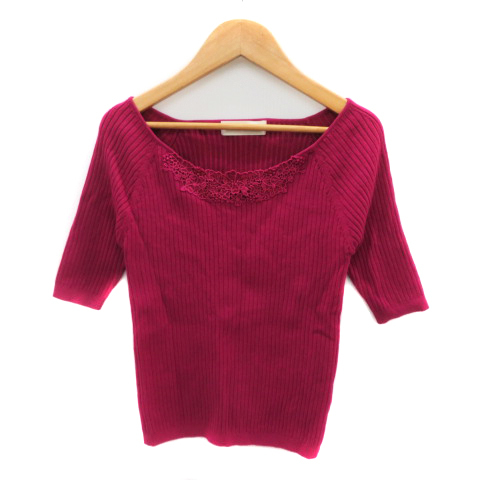 レッセパッセ LAISSE PASSE ニット カットソー 五分袖 レース 38 M マゼンタ /YK20 レディース