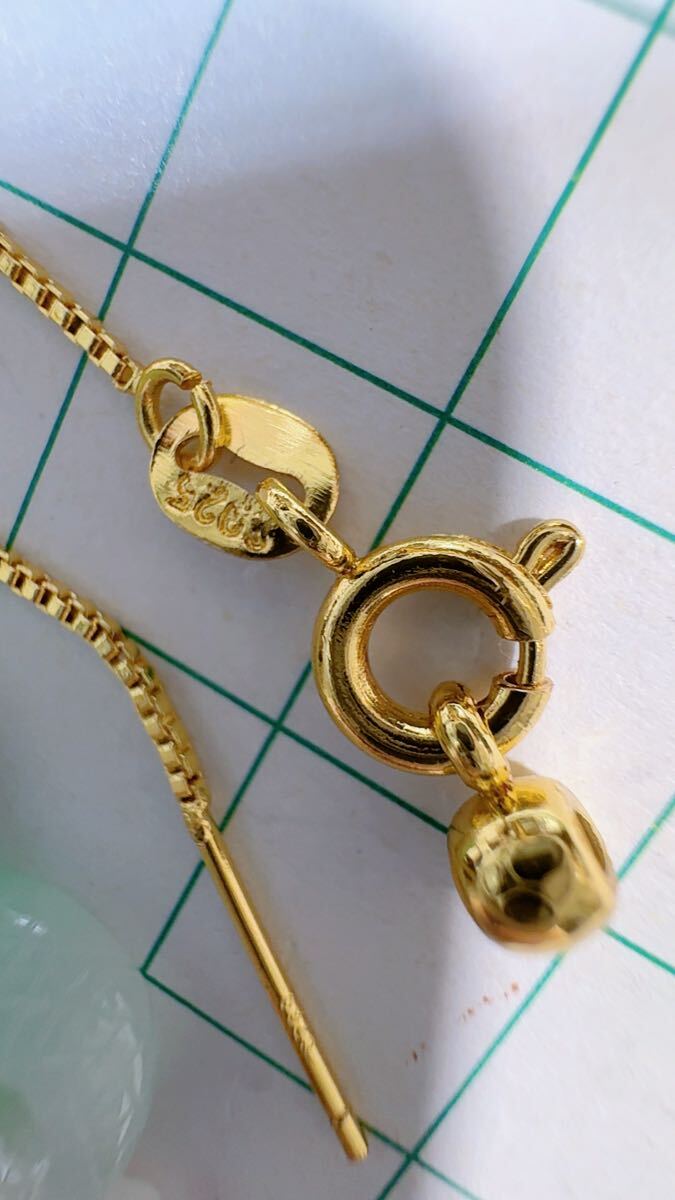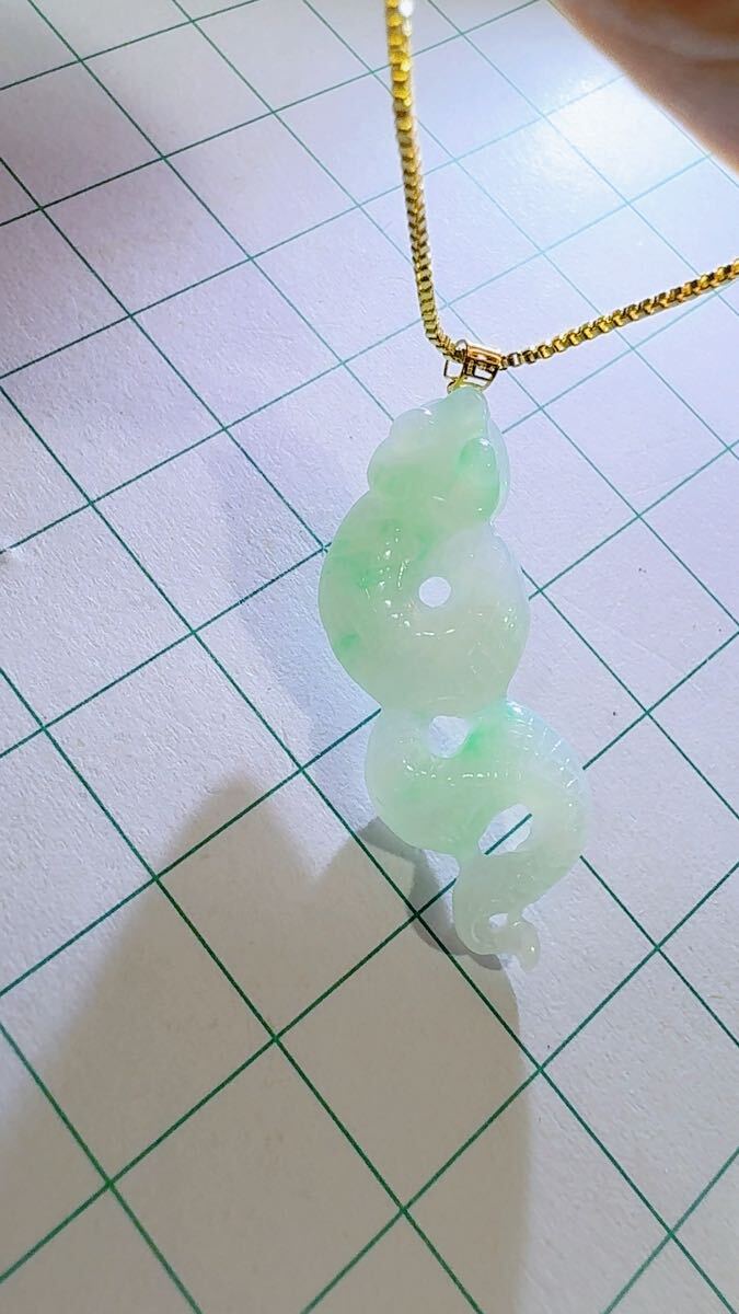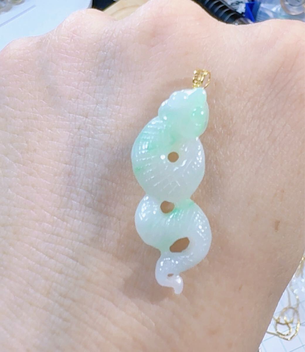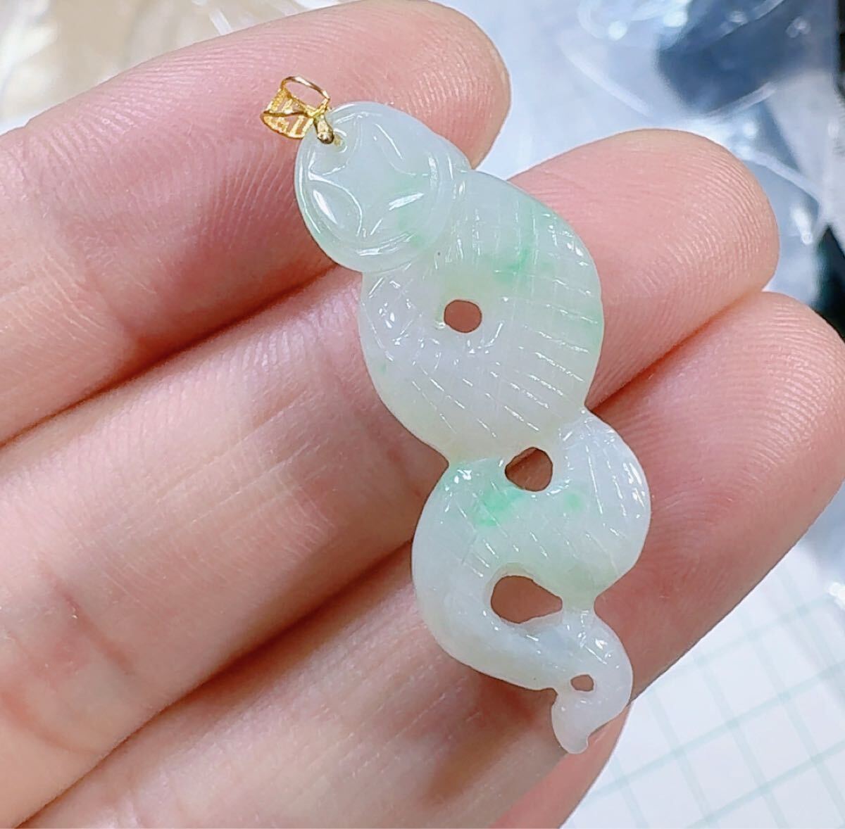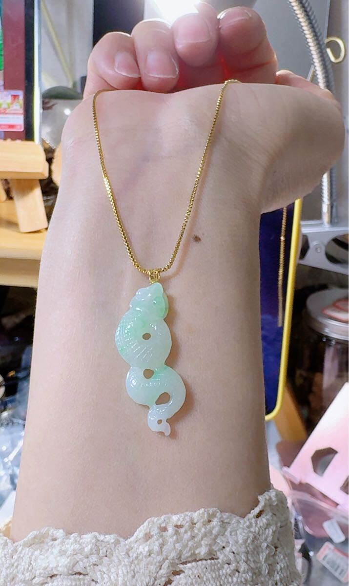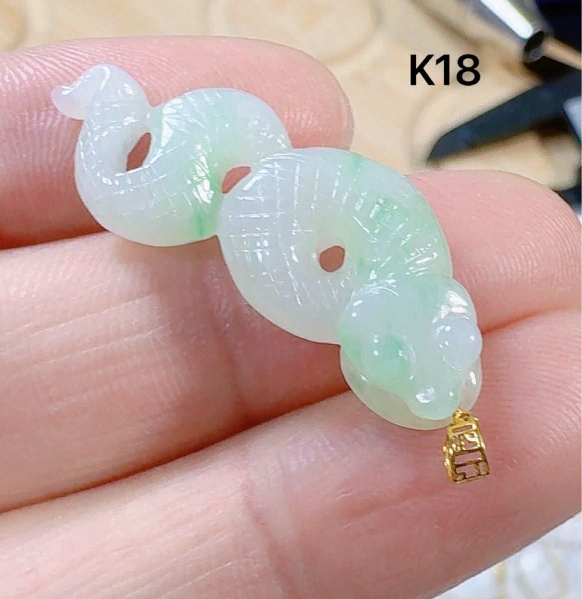 R2-01043天然本翡翠《本物保証》 緑白翡翠 巳年 ミャンマー産 ペンダント K18 チェーンS925 一点物 希少 縁起物 お守り パワーストーン