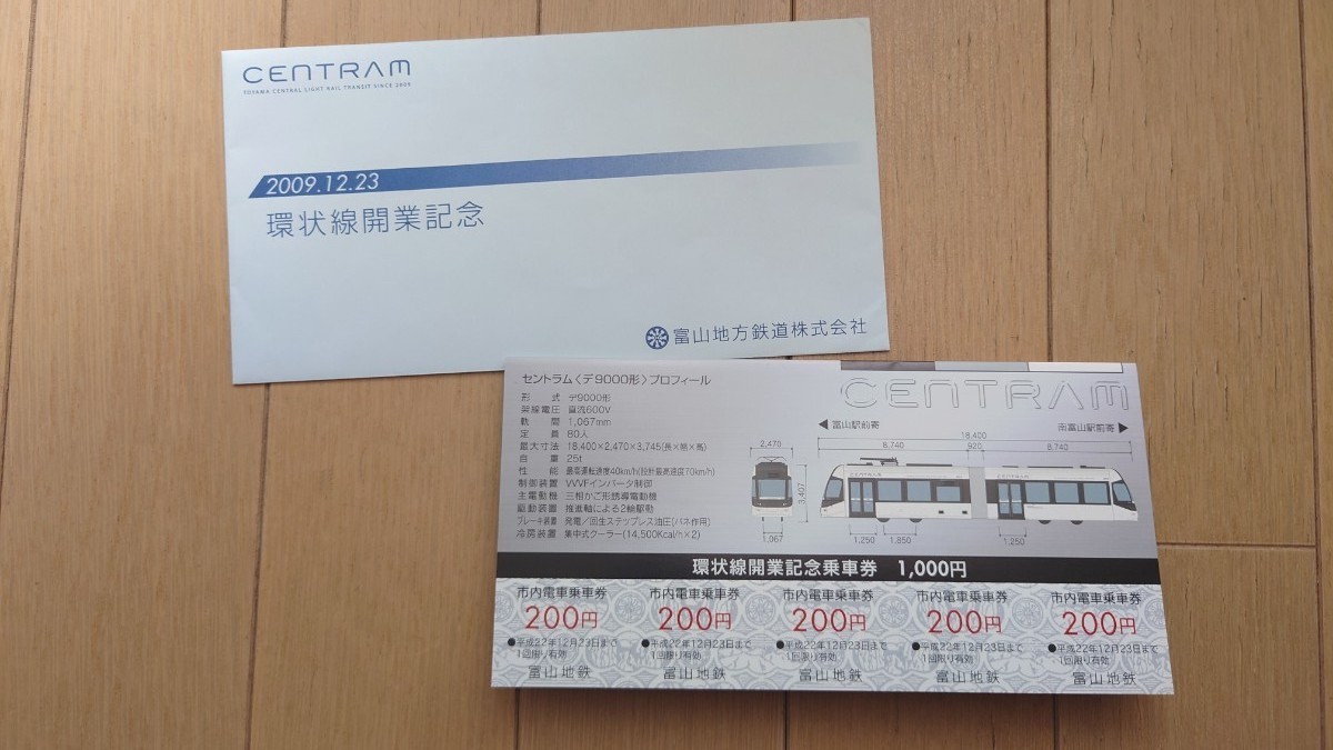 ◇富山地方鉄道◇環状線開業記念乗車券◇セントラム2009年