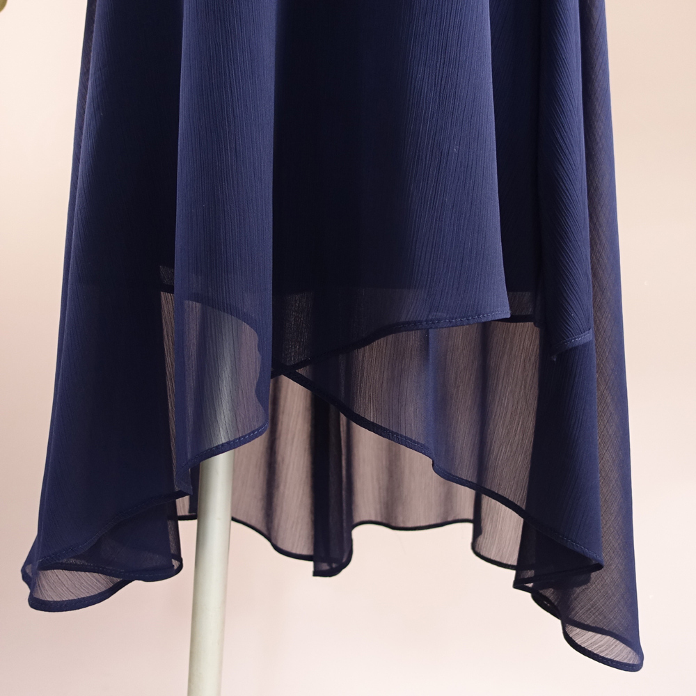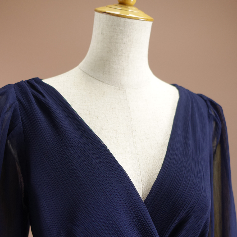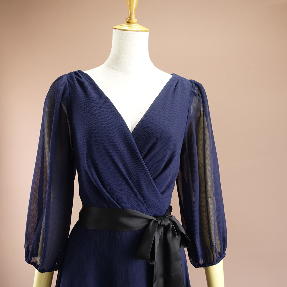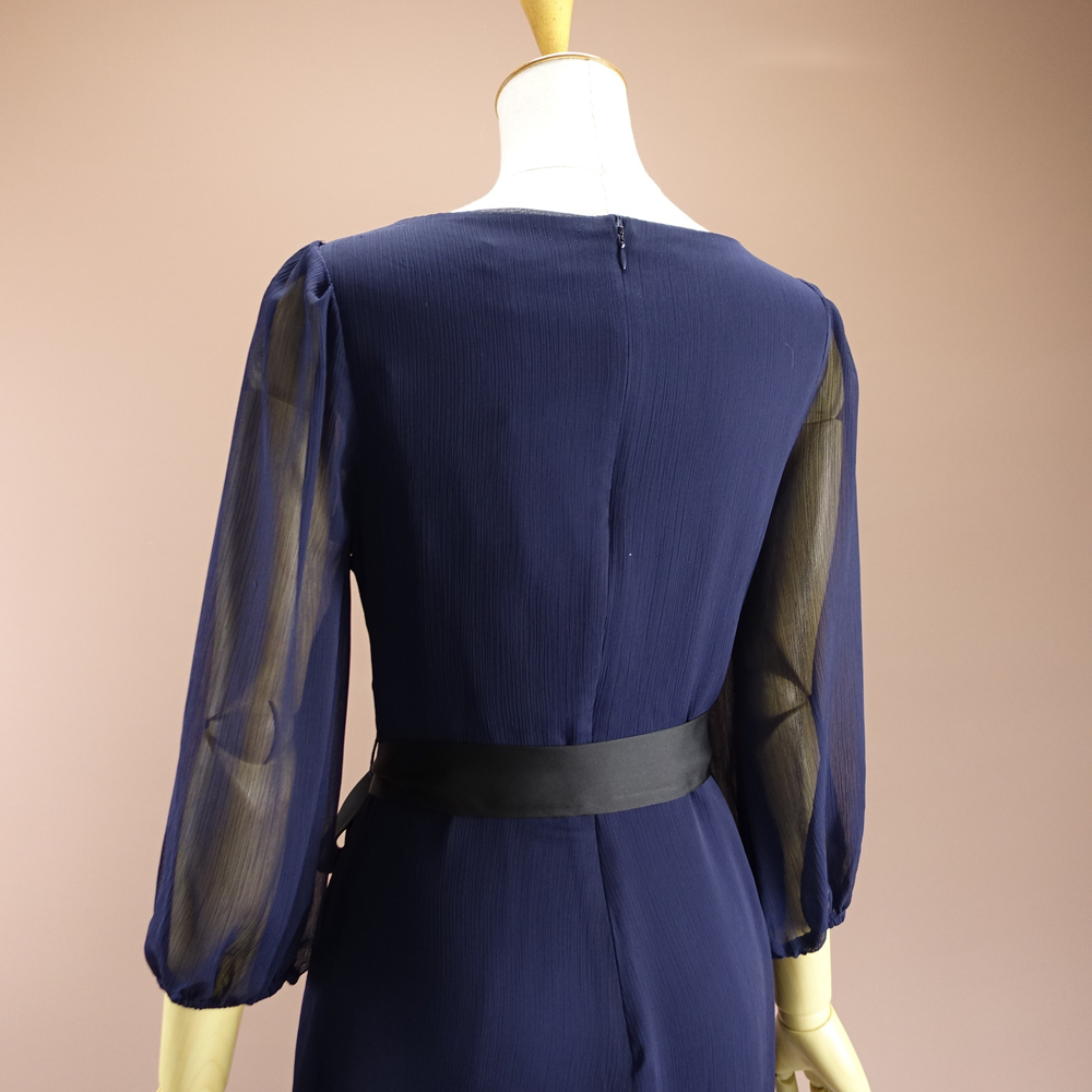新品DKNY 13号 ダナキャランニューヨーク 紺 カシュクール風 パフスリーブ 7分袖 フレア ワンピース パーティドレス 女子会 輝31C0602