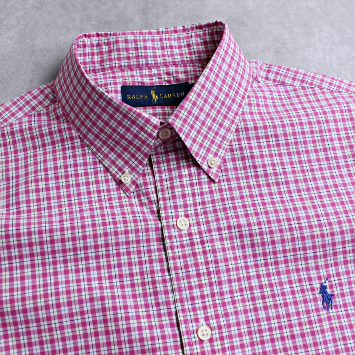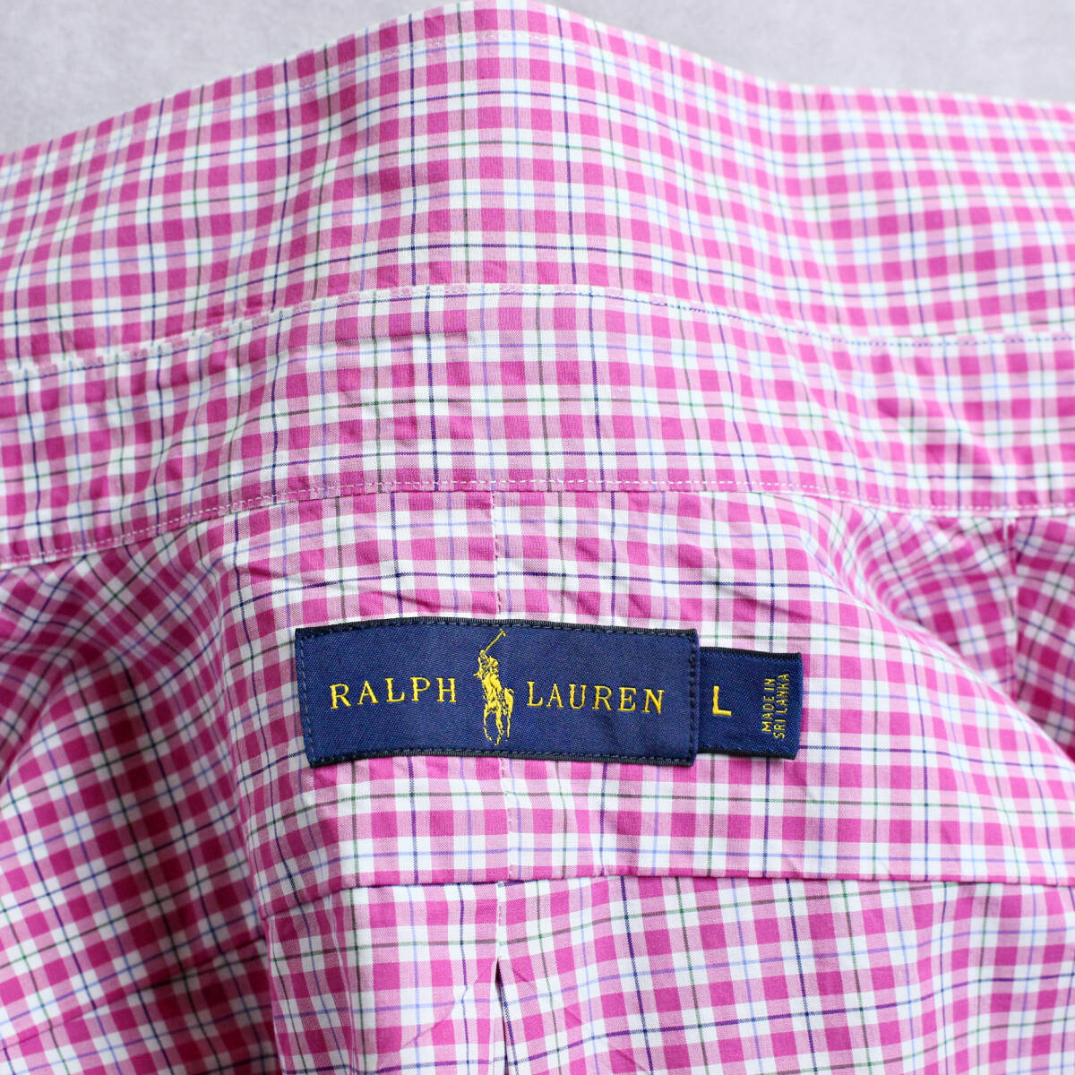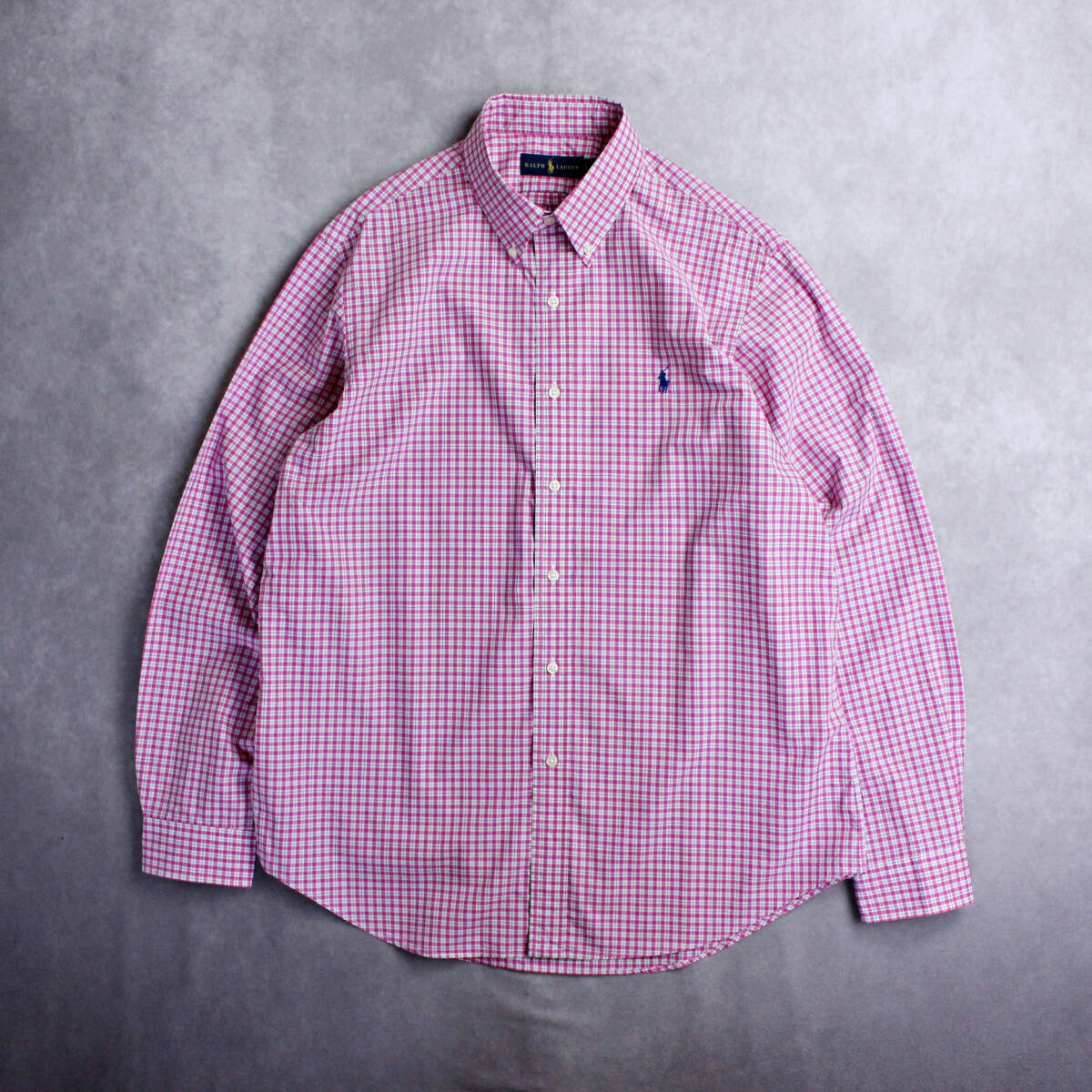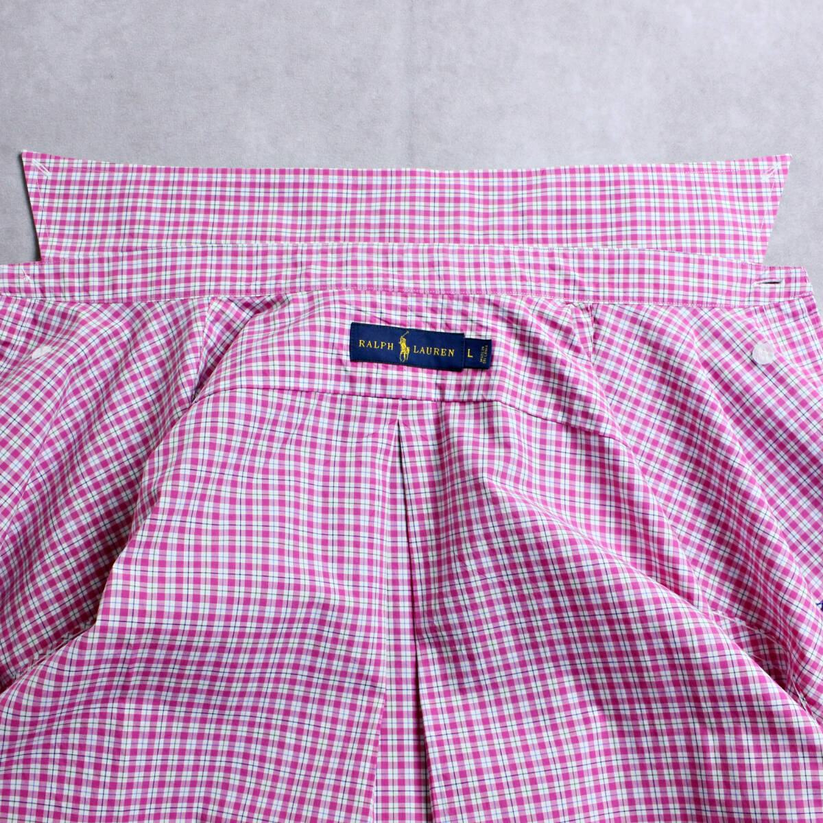 【POLO RALPH LAUREN】ポロラルフローレン 黄文字 ボタンダウン ピンクチェックシャツ Lサイズ プレッピー アイビー トラッド
