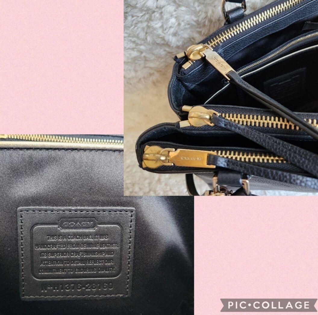 ショルダー取り外し可能、丸芯ハンドル、ファスナー付き大ポケット×3、ファスナー付き中ポケット×1、オープンポケット×2、内部サテン生地