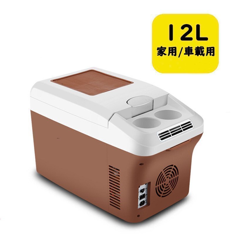 12L車載冷蔵庫 ポータブル冷蔵庫 -5℃~+65℃調整 持ち運べる小型冷蔵庫 クーラーボックス 家用車載用 静音 DC12V/24V AC110V ブラウン