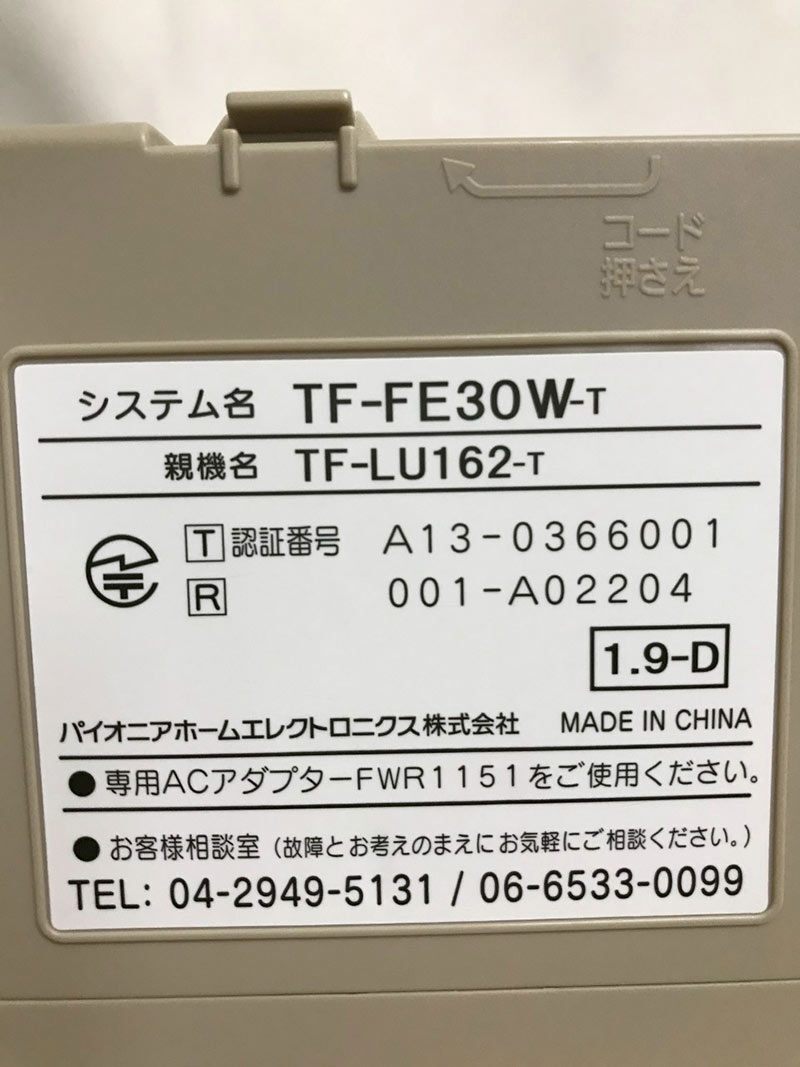 【北見市発】パイオニア Pioneer ワイヤレス電話機 TF-FE30W-t 親機 TF-LU162-T 子機 TF-EK33-T コードレス オシャレ