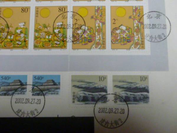 7 新中国切手カバー 2002年 20T 3種完 6枚ブロック・他貼
