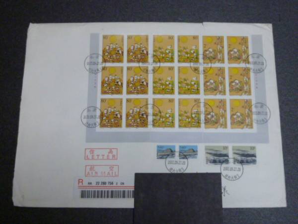 ○裏面を写しておりませんが、北京(差出人名有)の日本宛て実逓便、又は初日印付カバーです。消印をご参考下さい。