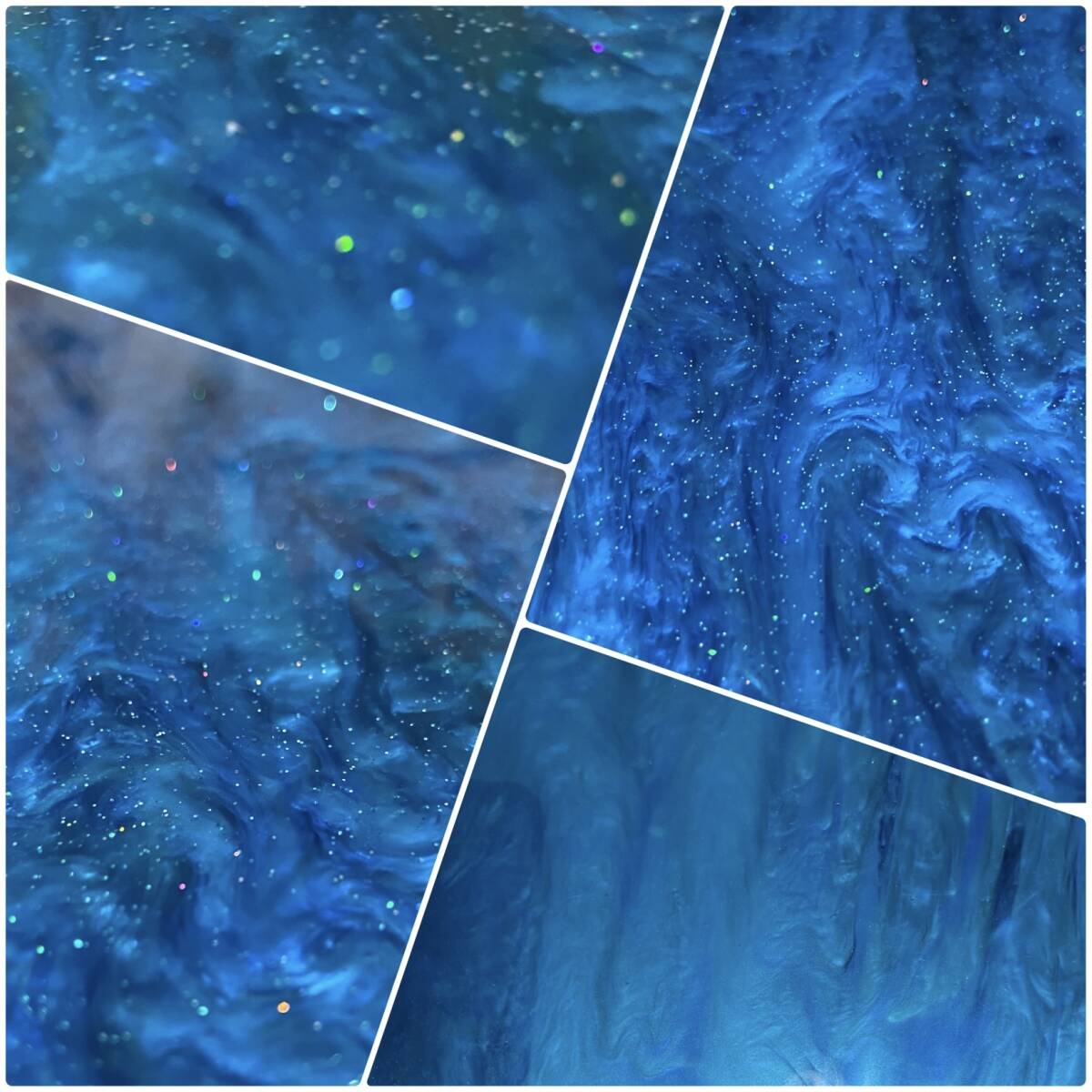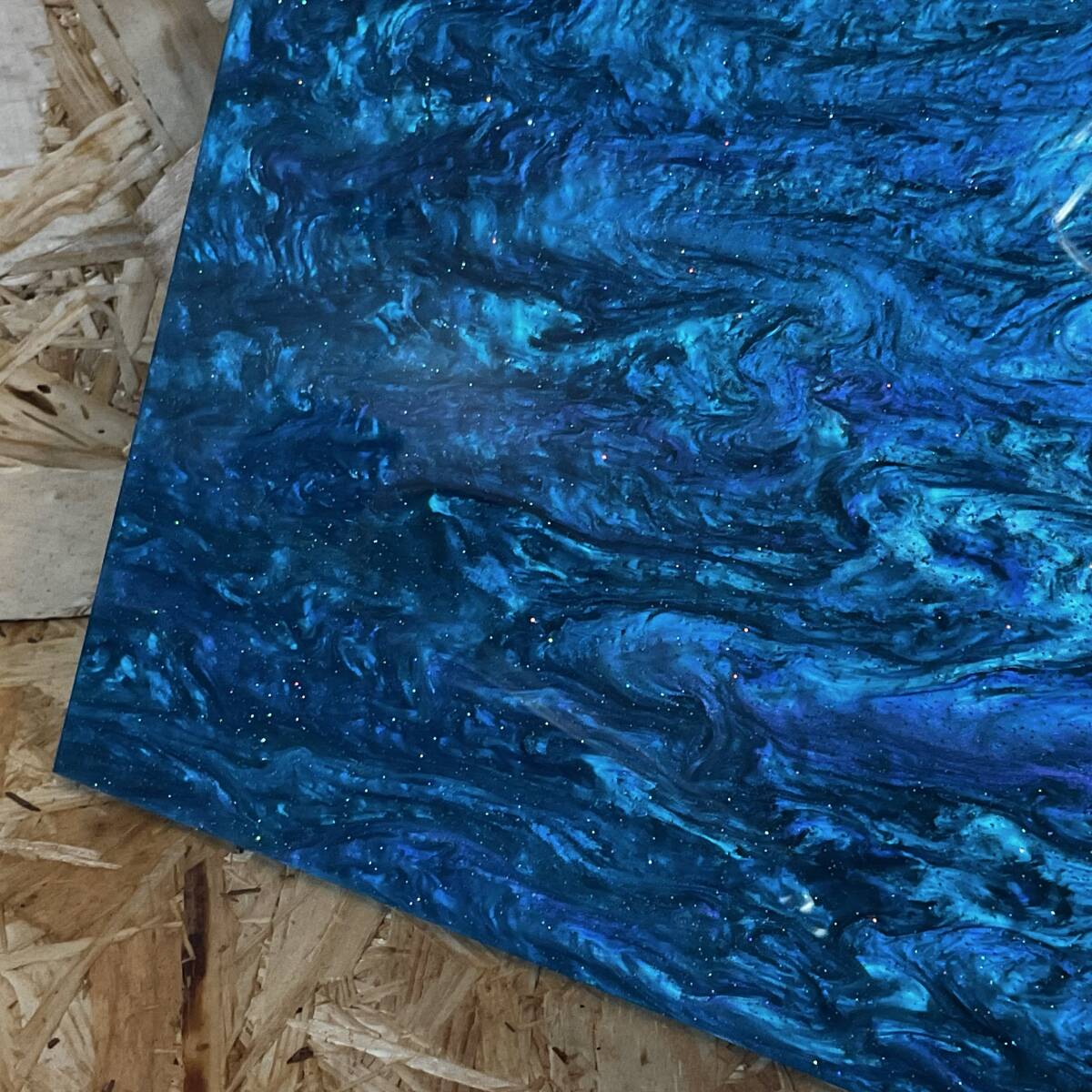 アクリルパール板 エメラルド×グリーン流雲柄 ラメ入り ブルーマーブル模様
