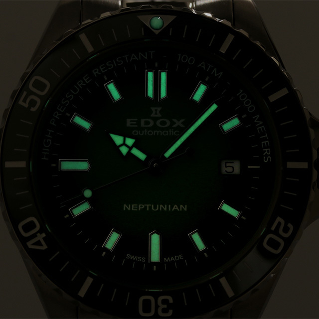 | 仕様 | 100気圧防水 日付表示 逆回転防止ベゼル スーパールミノバ(針・インデックス) ねじロック式りゅうず スイス製 |