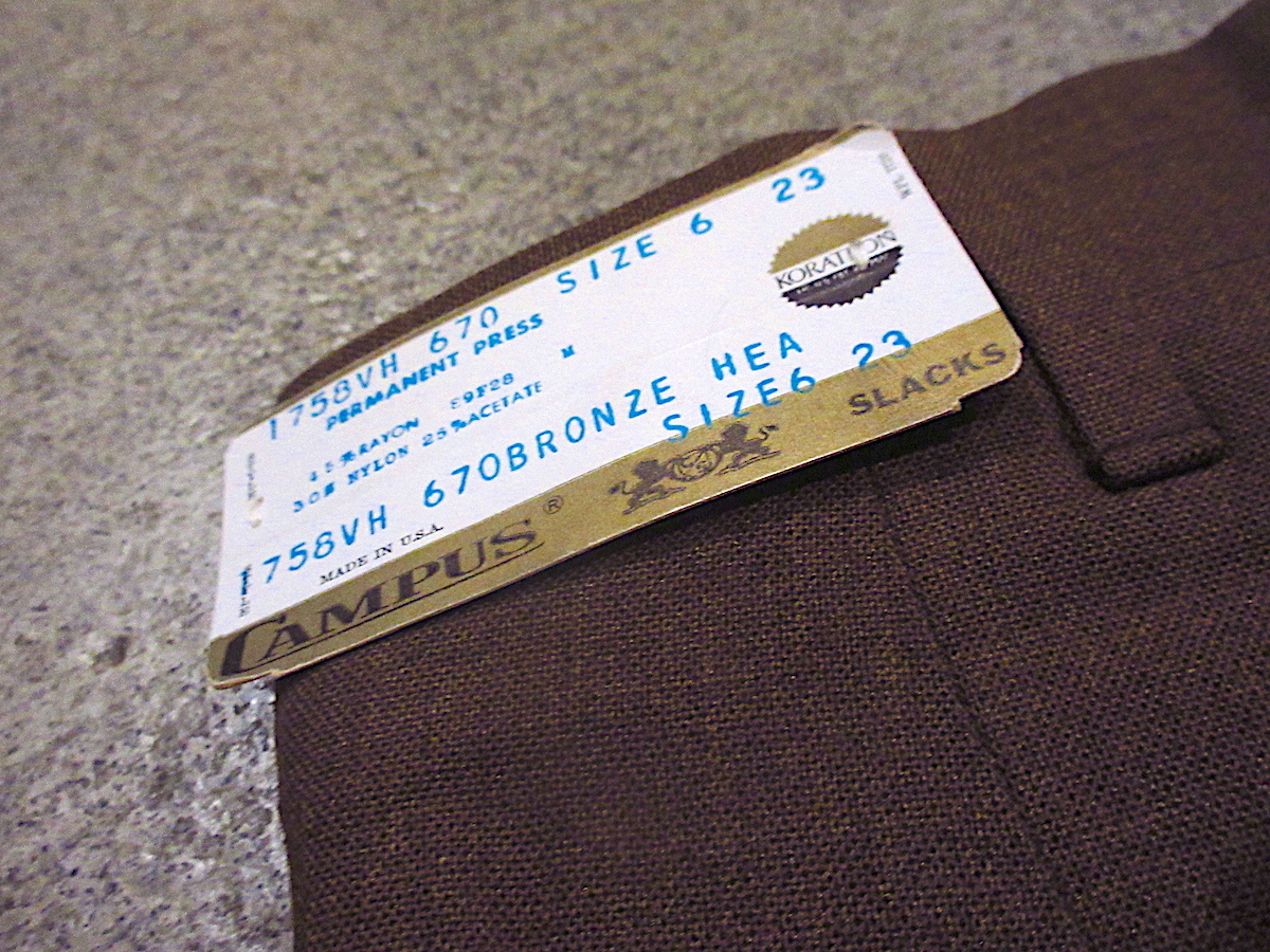 1960's DEADSTOCK CAMPUS キッズ テーパードスラックス 茶 size 6