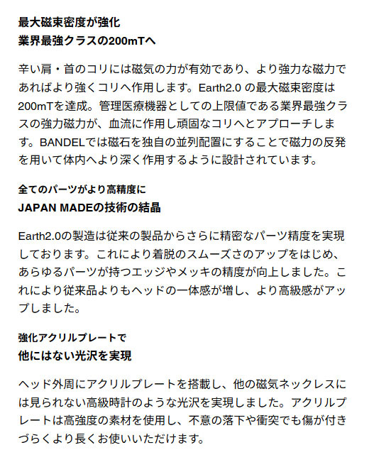 | 【正規品・新品未使用】 ●品名:Healthcare Necklace Earth mini 2.0 ●品番:HLCFNE2BS43 ●カラー:Black×Silver ●素材:ループ:PVC TPU 化合素材 + ネオジム磁石 ヘッドベース部:チタン ヘッド装飾部:ステンレススチール・強化アクリル ●サイズ:43cm(ヘッド円形部Φ1.85cm) ●ループの太さ:3.0mm ●最大磁束密度:200mT ●原産国:日本 ●定価:27,500円 ●コンディション:新品未使用品 ●付属:専用箱、保証書 ※返品、交換には一切対応しておりません。予めご了承下さい。 |