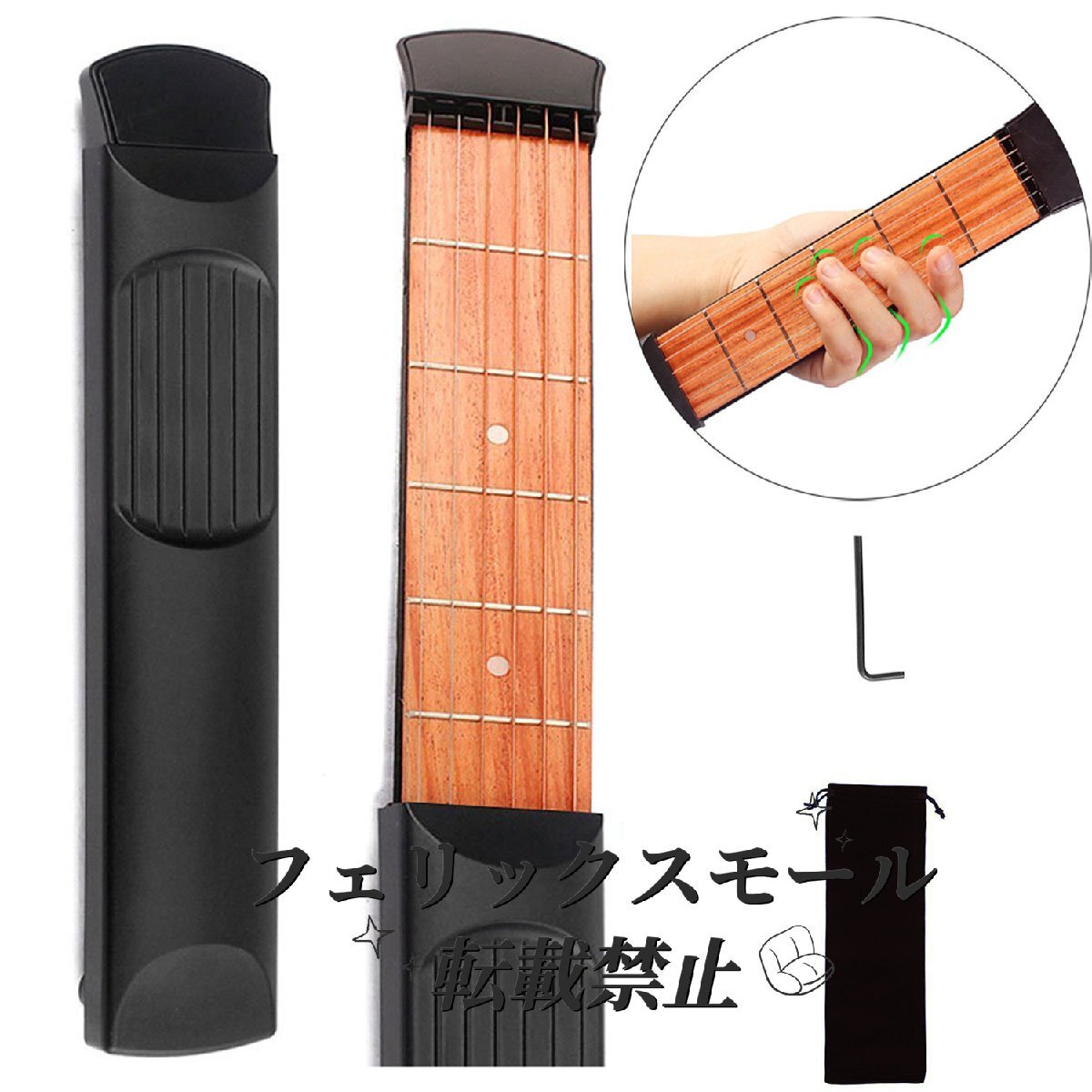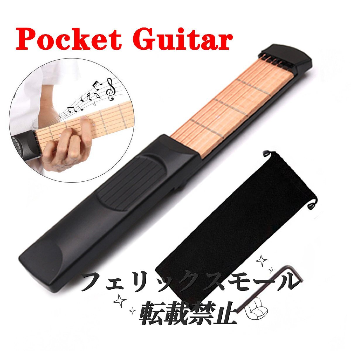 ポケットサイズギター 便携ギター 持ち運び可能 初心者向け コンパクト 軽量 コード練習用 6弦 6フレット ケース付き 調節レンチ付き