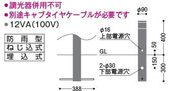 ガーデンライト ポールライト ポールのみ ブラック 地上高400 φ90 防雨型 【灯具なし】