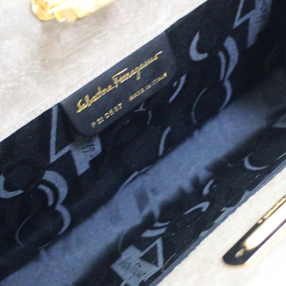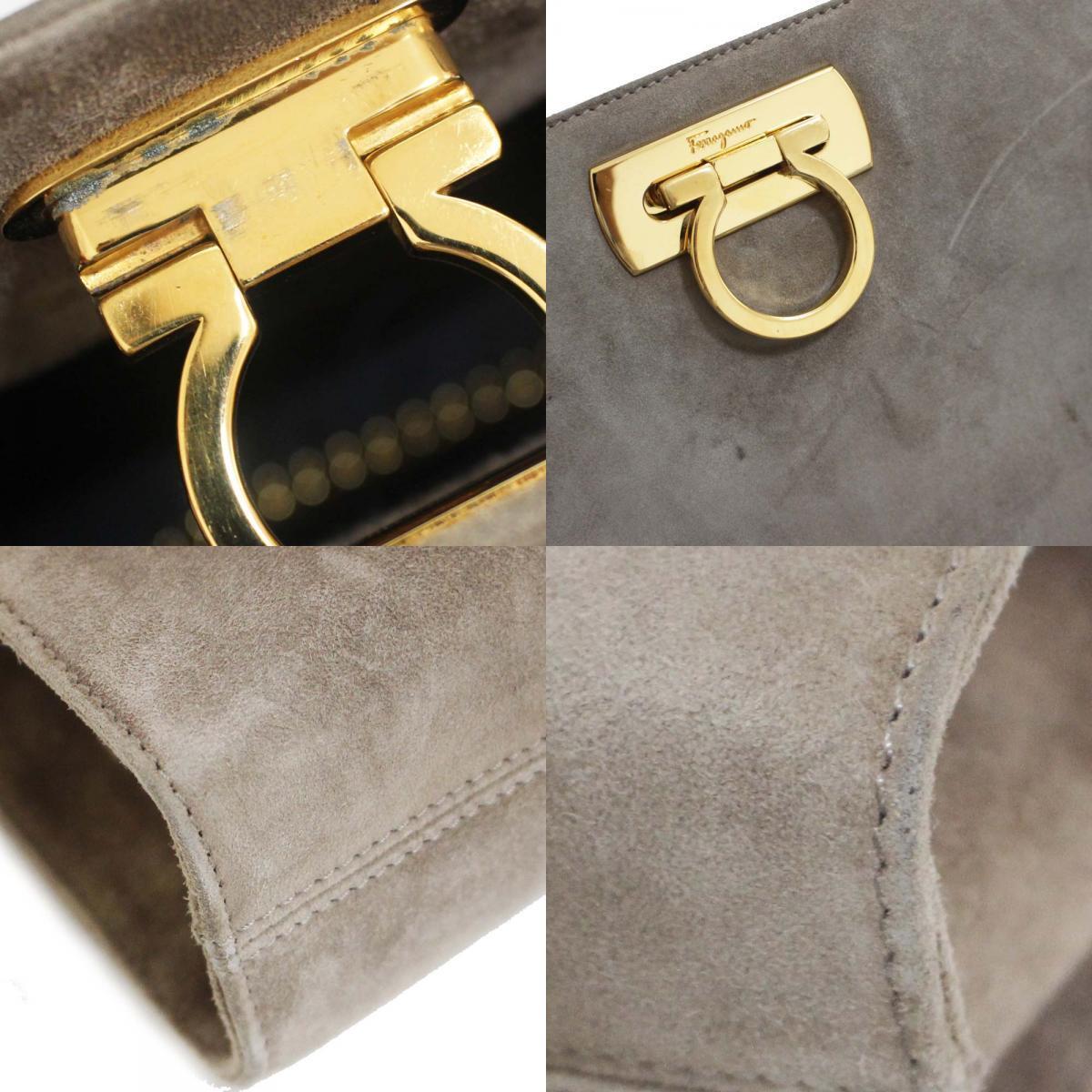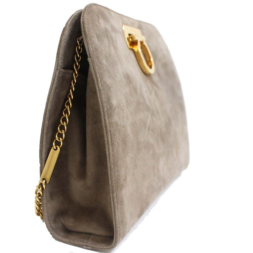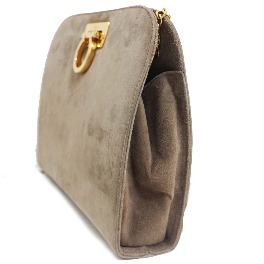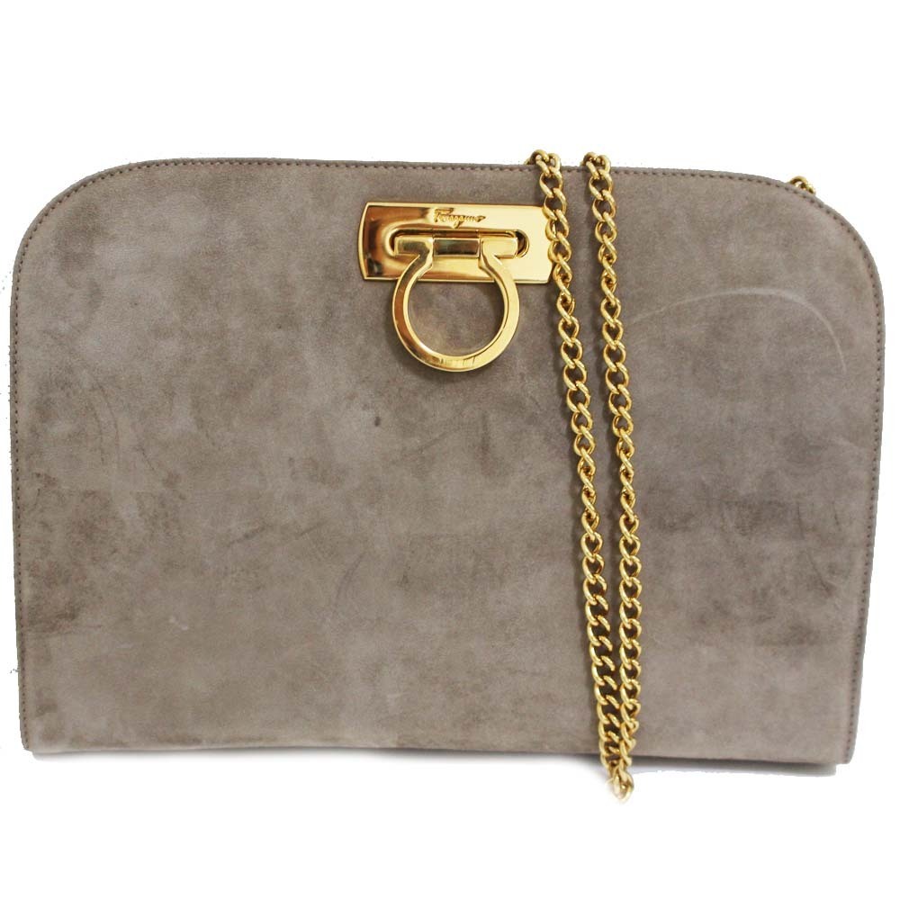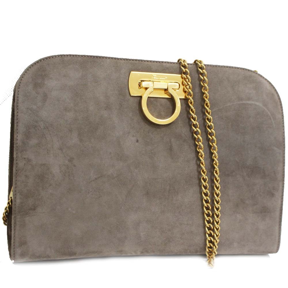 サルヴァトーレフェラガモ チェーン ガンチーニ金具 ショルダーバッグ レディース スウェード グレー P210587 中古 送料無料 Salvatore Ferragamo