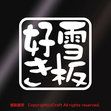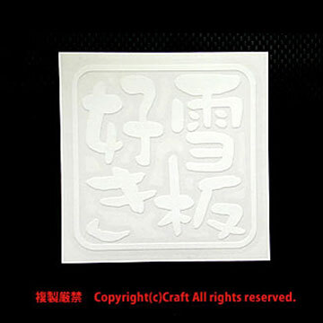 雪板好き/ステッカー(7.5cm/白)スノーボード、スキー、屋外耐候素材**