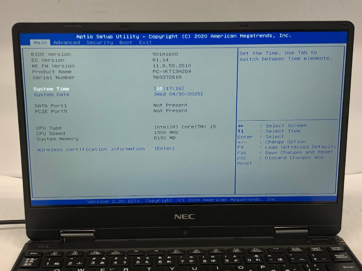 ジャンク/ NEC PC-VKT13HZG4 Intel Core i5-8200Y メモリ8.19GB ストレージ無し 【K13834】